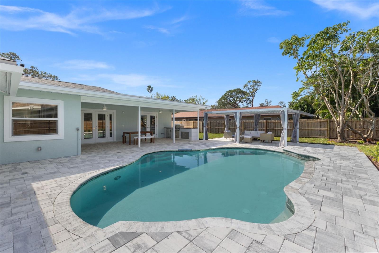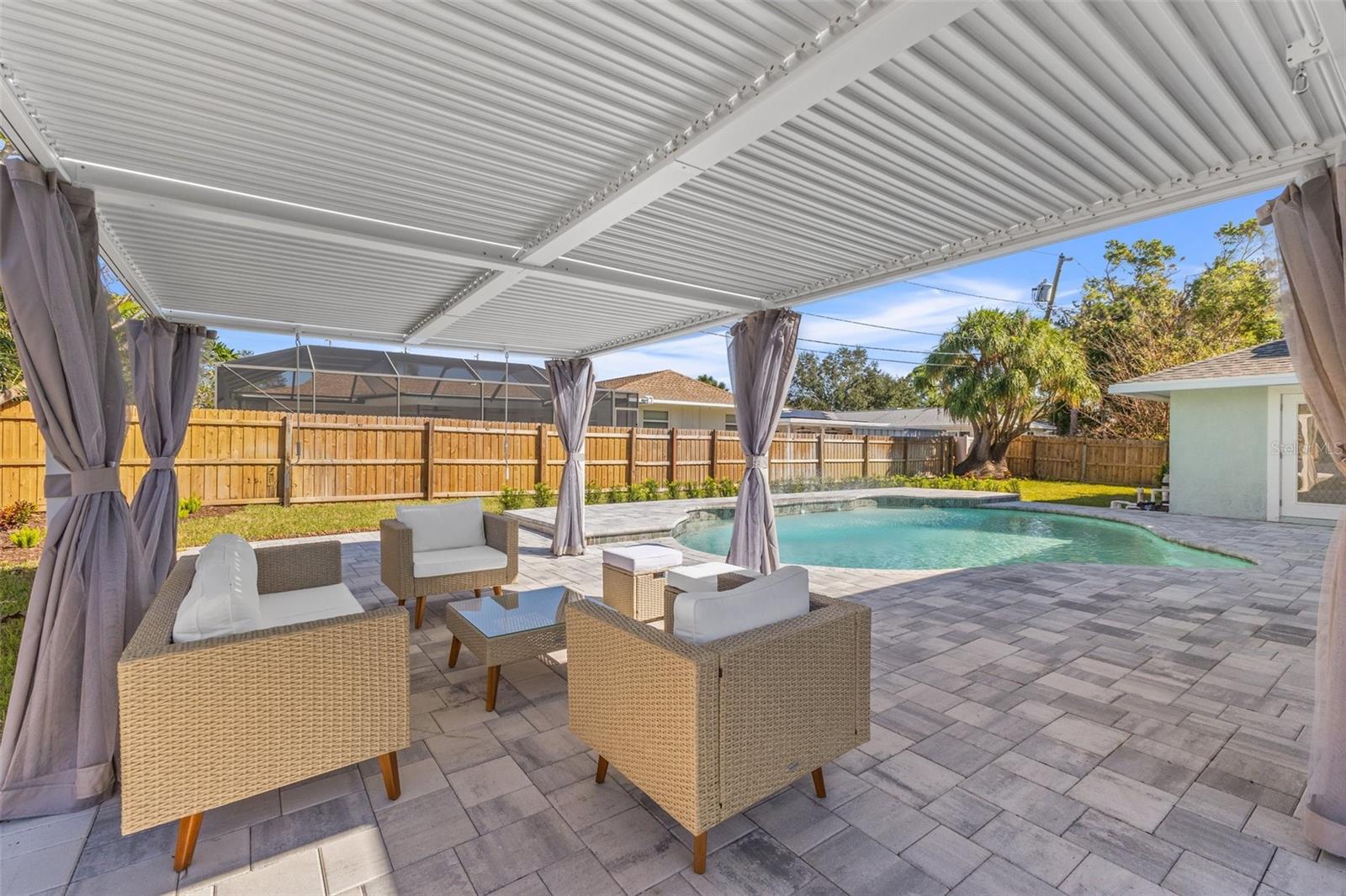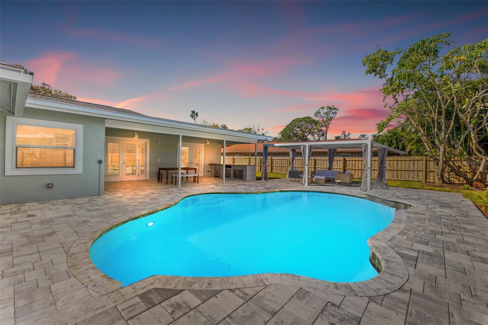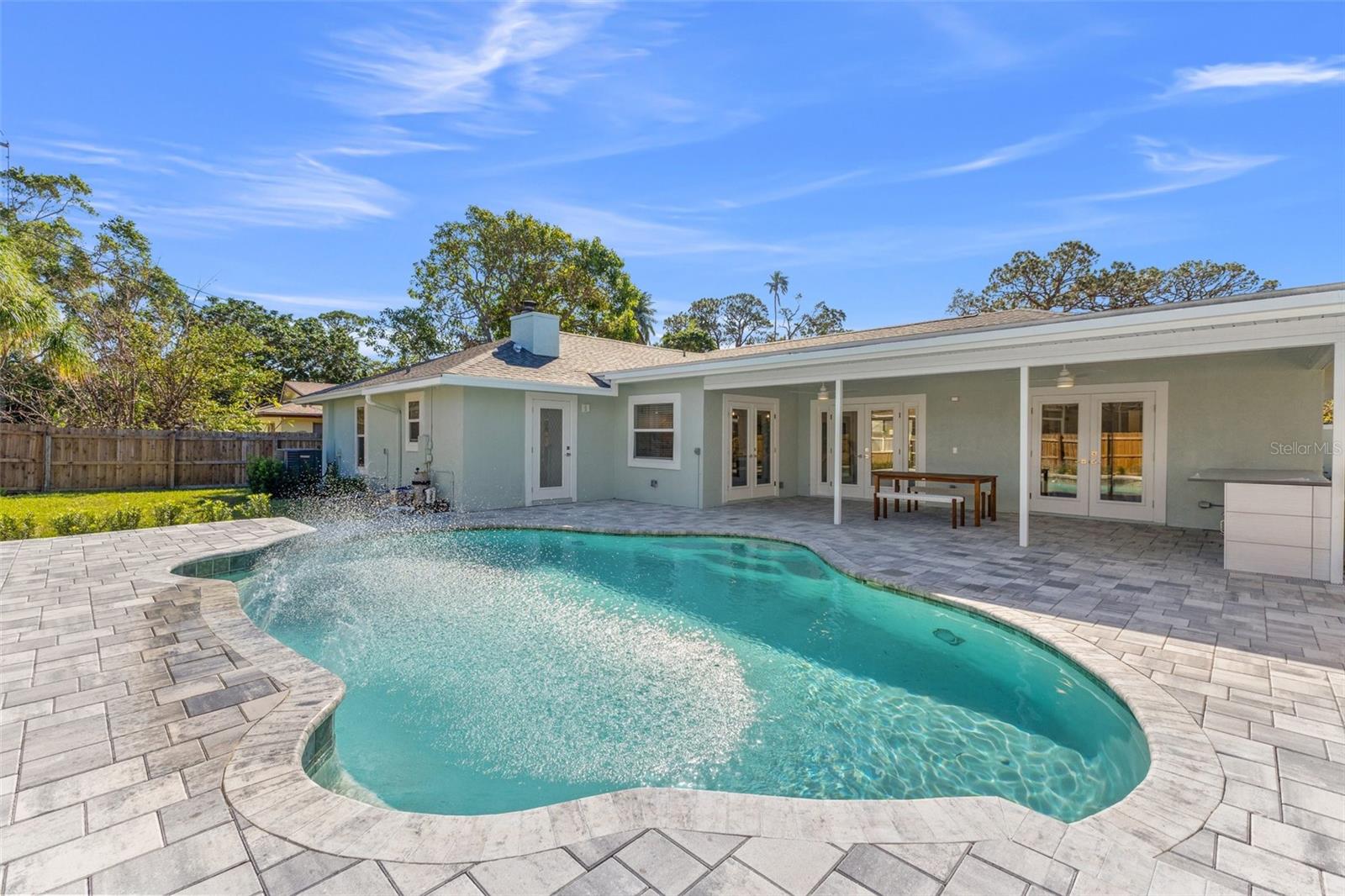 Discover your own slice of paradise at 1053 Serpentine Drive S, nestled in the highly sought-after historic neighborhood of "The Pink Streets." This beautiful residence remained high and dry during Helene and Milton. This charming area, known for its tranquil setting and rich history, is located in the southernmost part of St. Petersburg. This coveted location provides endless entertainment and a convenient lifestyle due to its effortless access to Tampa International Airport, our award winning Gulf Beaches, booming Downtown St Pete, Sunshine Skyway Bridge and the ever-evolving Skyway Marina district. You're also just a stroll away from a serene 9.5 acre city park on Tampa Bay. This 4-bedroom, 3.5-bath, 2-car garage pool home sits on an expansive lot of over a quarter-acre, offering plenty of space for your family and guests. Built in 1984 but completely revitalized, this home feels like new construction with a full suite of upgrades. In 2024, the roof, HVAC, and water heater were replaced, ensuring peace of mind for years to come. Additionally, the home boasts impact-rated windows and an impact-rated garage door, keeping it safe and dry throughout the recent hurricane season. No detail has been overlooked in this stunning renovation. The exterior shines with fresh paint, new landscaping, front and back pavers, updated fence and a resurfaced pool complete with an outdoor kitchen. Inside, the home shines with luxury vinyl plank flooring throughout, a completely remodeled high-end kitchen and bathrooms, a wet bar complete with a wine fridge and a large walk in laundry room. Other upgrades include recessed lighting throughout, custom closets in every bedroom, a whole-home water softener, and front and back irrigation systems on a private well. There's also a newly installed 20-foot double gate with shell parking, perfect for storing your boat, RV, or large trailer. If you've been searching for a turnkey, move-in ready home on a large lot in an unbeatable location, look no further. Your dream home awaits at 1053 Serpentine Drive S, in the exceptional Pink Streets neighborhood. Seize this incredibly rare opportunity today!