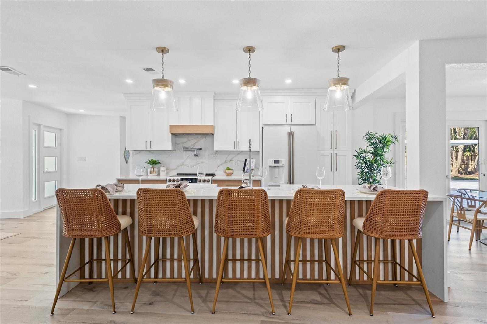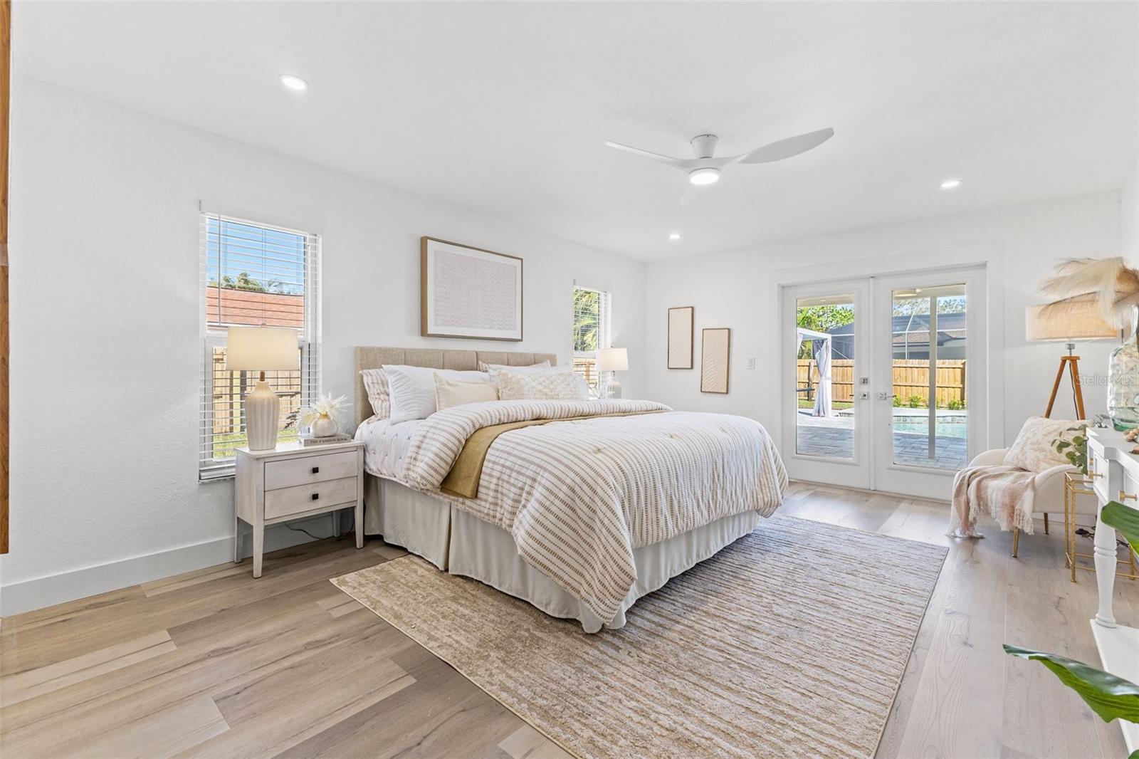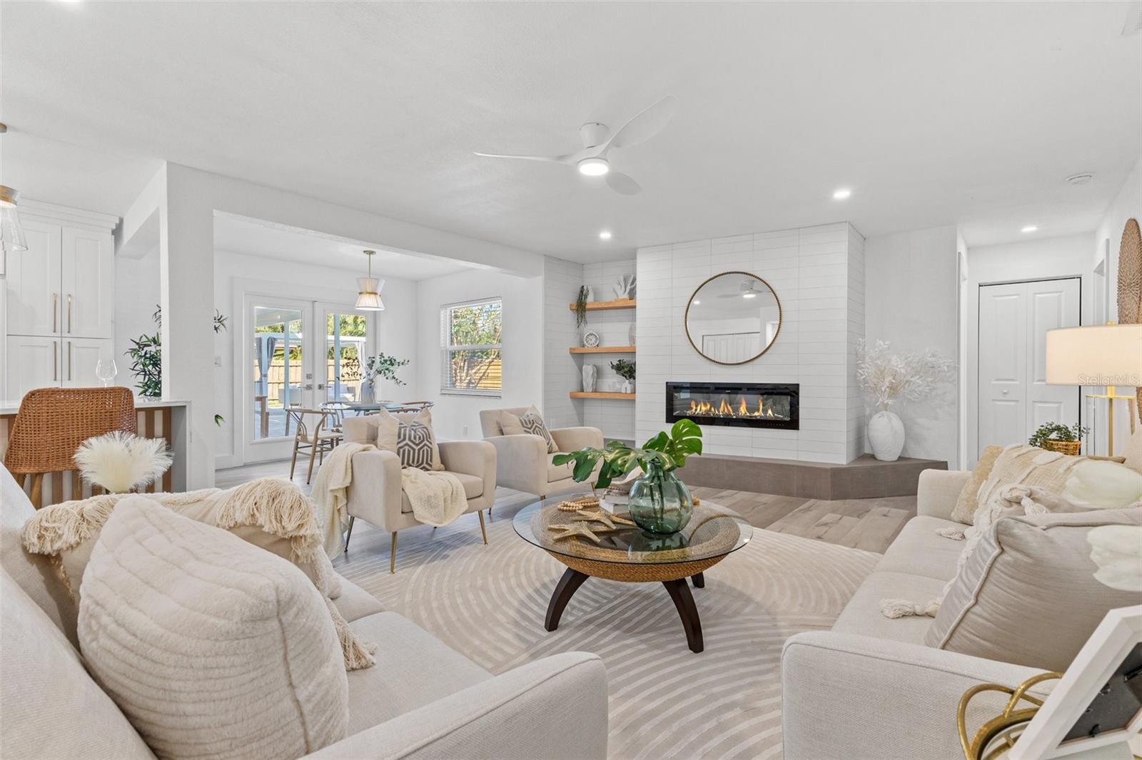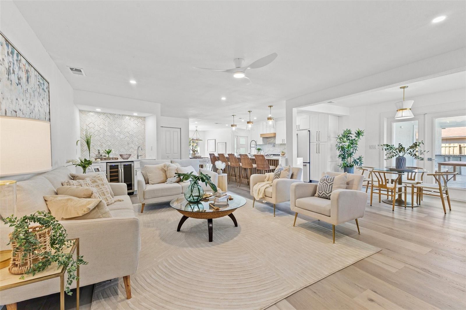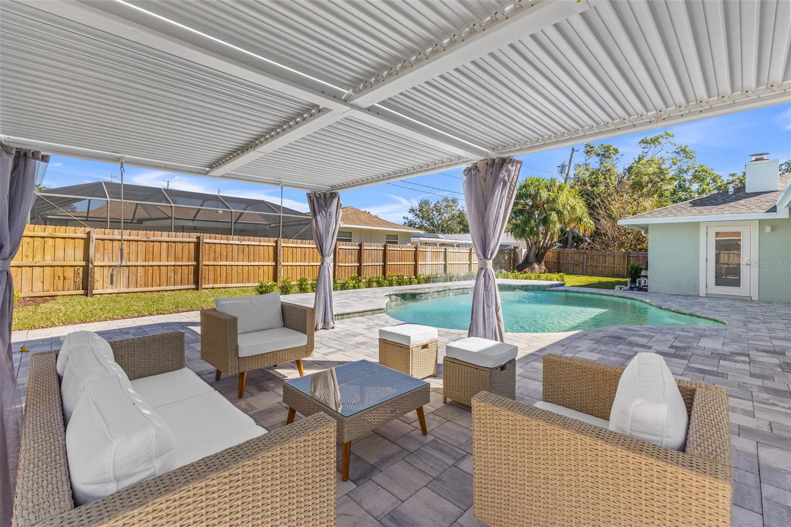 Discover your own slice of paradise at 1053 Serpentine Drive S, nestled in the highly sought-after historic neighborhood of "The Pink Streets." This beautiful residence remained high and dry during Helene and Milton. This charming area, known for its tranquil setting and rich history, is located in the southernmost part of St. Petersburg. This coveted location provides endless entertainment and a convenient lifestyle due to its effortless access to Tampa International Airport, our award winning Gulf Beaches, booming Downtown St Pete, Sunshine Skyway Bridge and the ever-evolving Skyway Marina district. You're also just a stroll away from a serene 9.5 acre city park on Tampa Bay. This 4-bedroom, 3.5-bath, 2-car garage pool home sits on an expansive lot of over a quarter-acre, offering plenty of space for your family and guests. Built in 1984 but completely revitalized, this home feels like new construction with a full suite of upgrades. In 2024, the roof, HVAC, and water heater were replaced, ensuring peace of mind for years to come. Additionally, the home boasts impact-rated windows and an impact-rated garage door, keeping it safe and dry throughout the recent hurricane season. No detail has been overlooked in this stunning renovation. The exterior shines with fresh paint, new landscaping, front and back pavers, updated fence and a resurfaced pool complete with an outdoor kitchen. Inside, the home shines with luxury vinyl plank flooring throughout, a completely remodeled high-end kitchen and bathrooms, a wet bar complete with a wine fridge and a large walk in laundry room. Other upgrades include recessed lighting throughout, custom closets in every bedroom, a whole-home water softener, and front and back irrigation systems on a private well. There's also a newly installed 20-foot double gate with shell parking, perfect for storing your boat, RV, or large trailer. If you've been searching for a turnkey, move-in ready home on a large lot in an unbeatable location, look no further. Your dream home awaits at 1053 Serpentine Drive S, in the exceptional Pink Streets neighborhood. Seize this incredibly rare opportunity today!