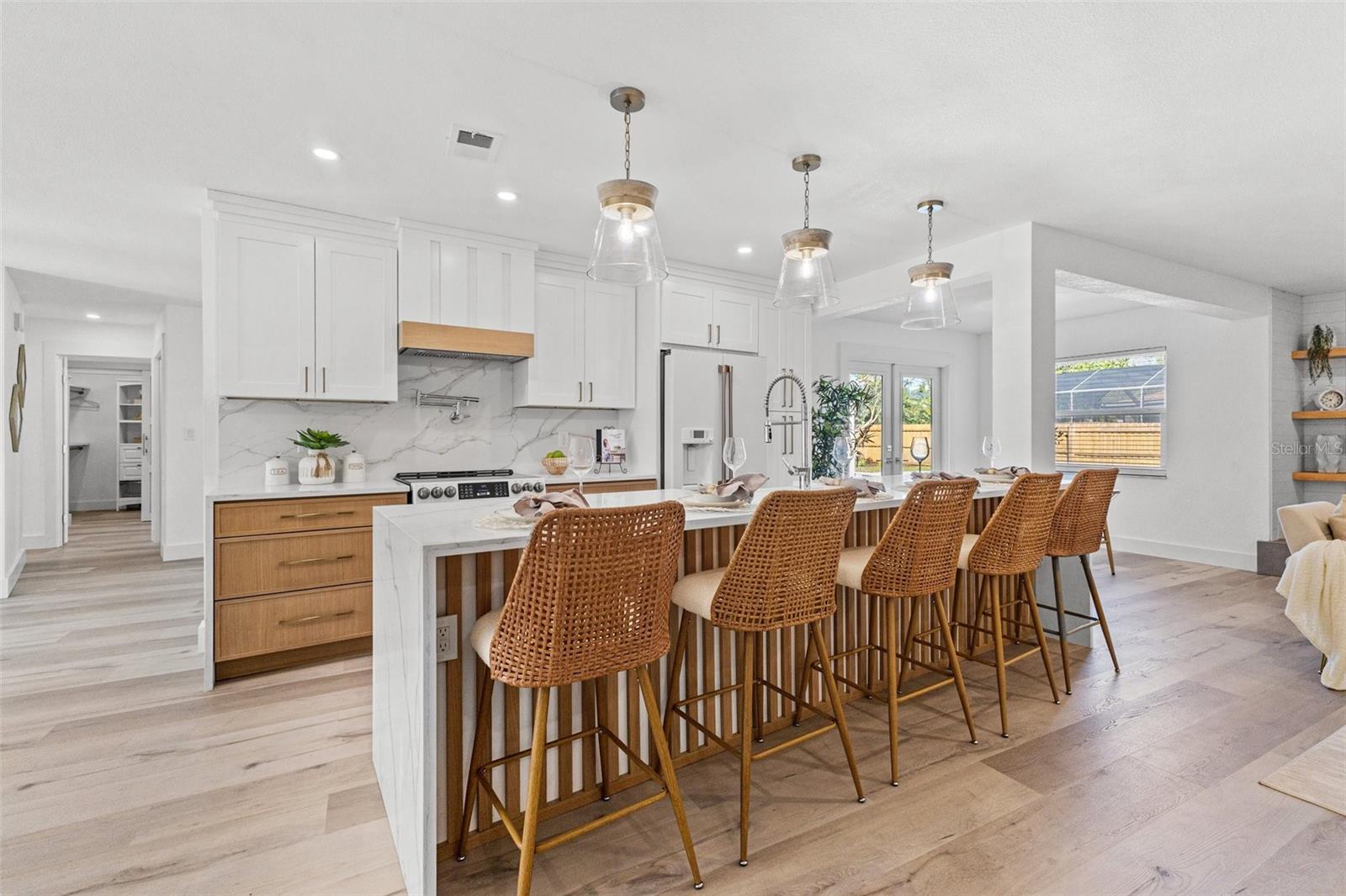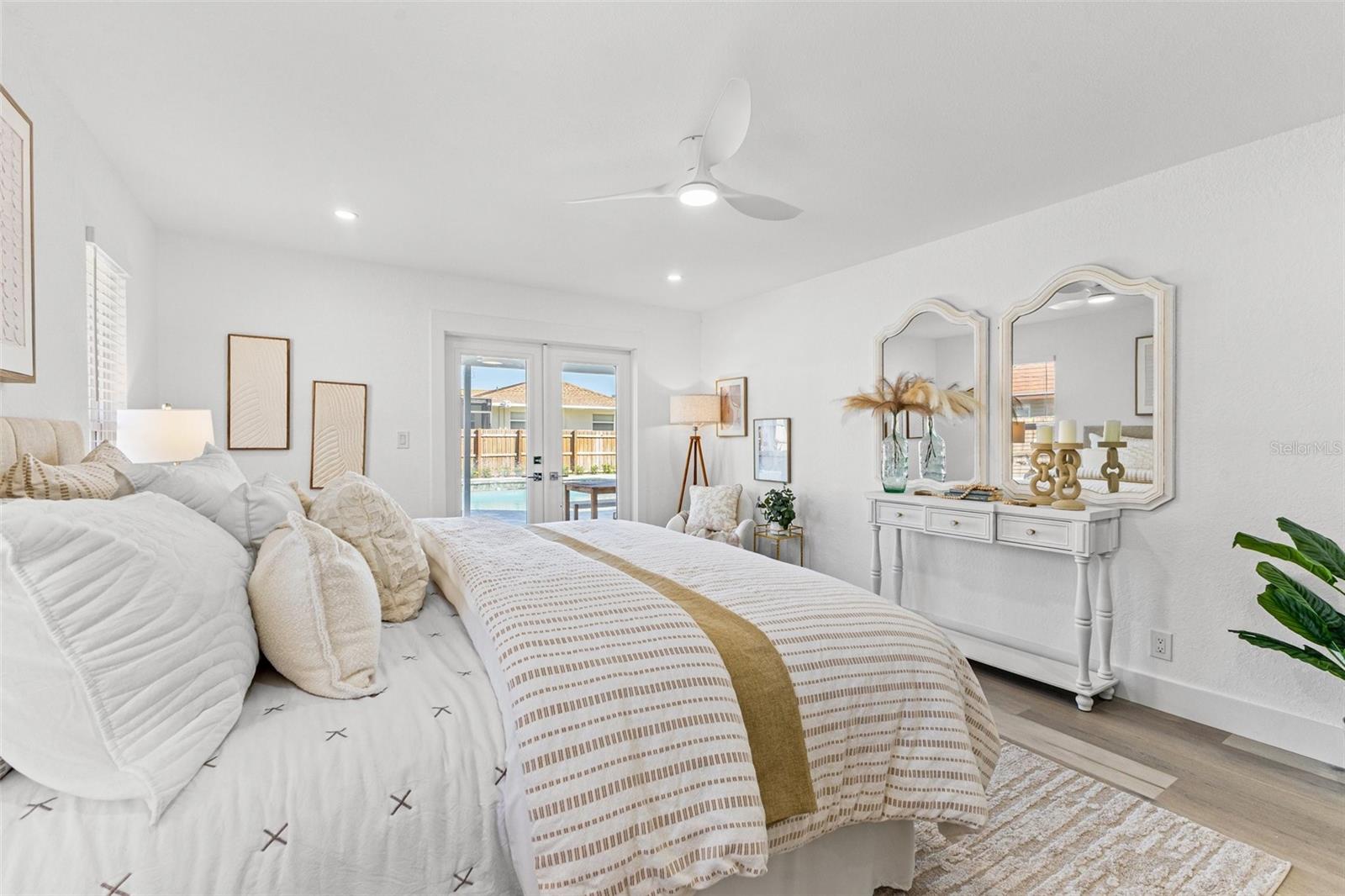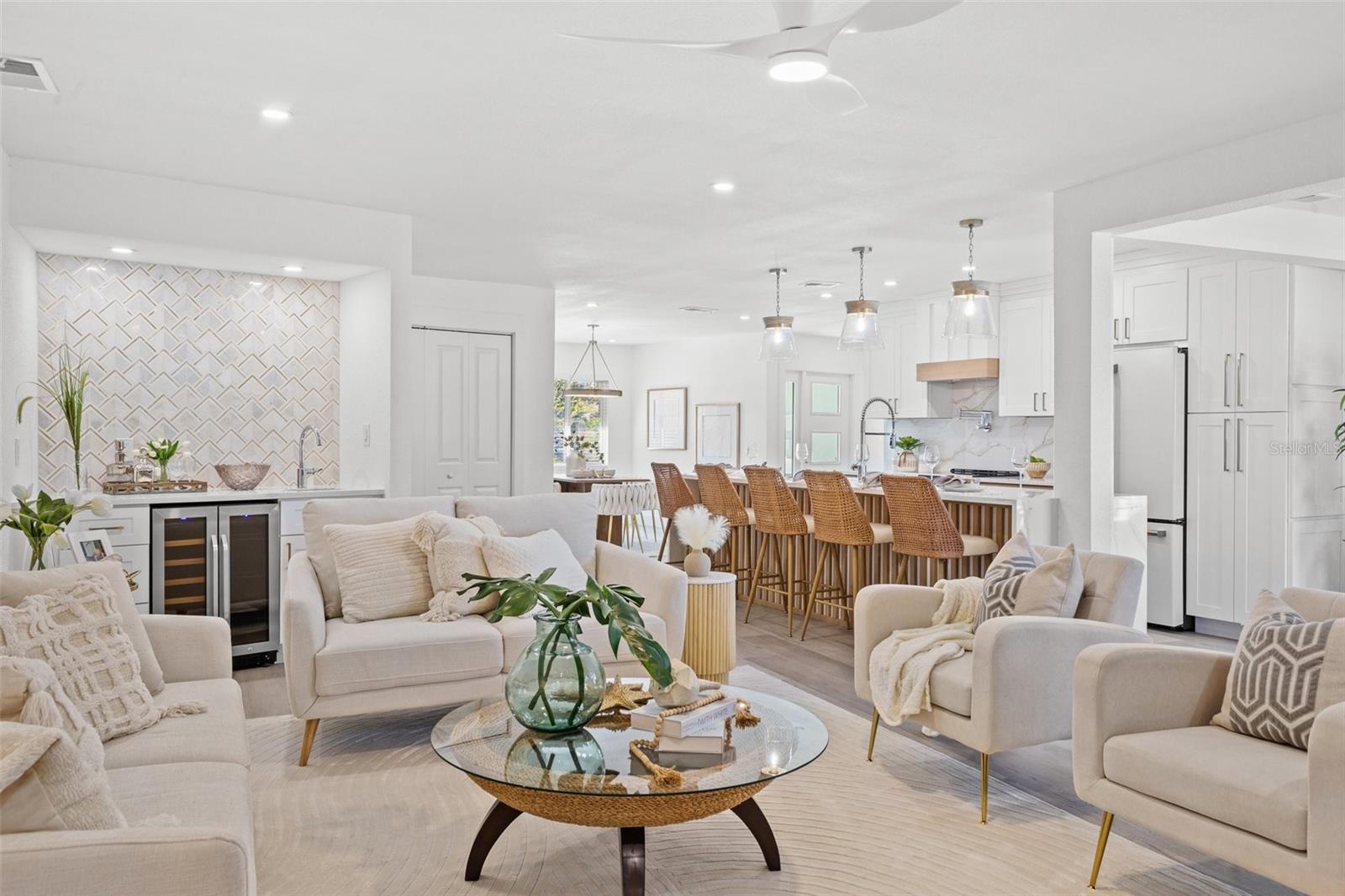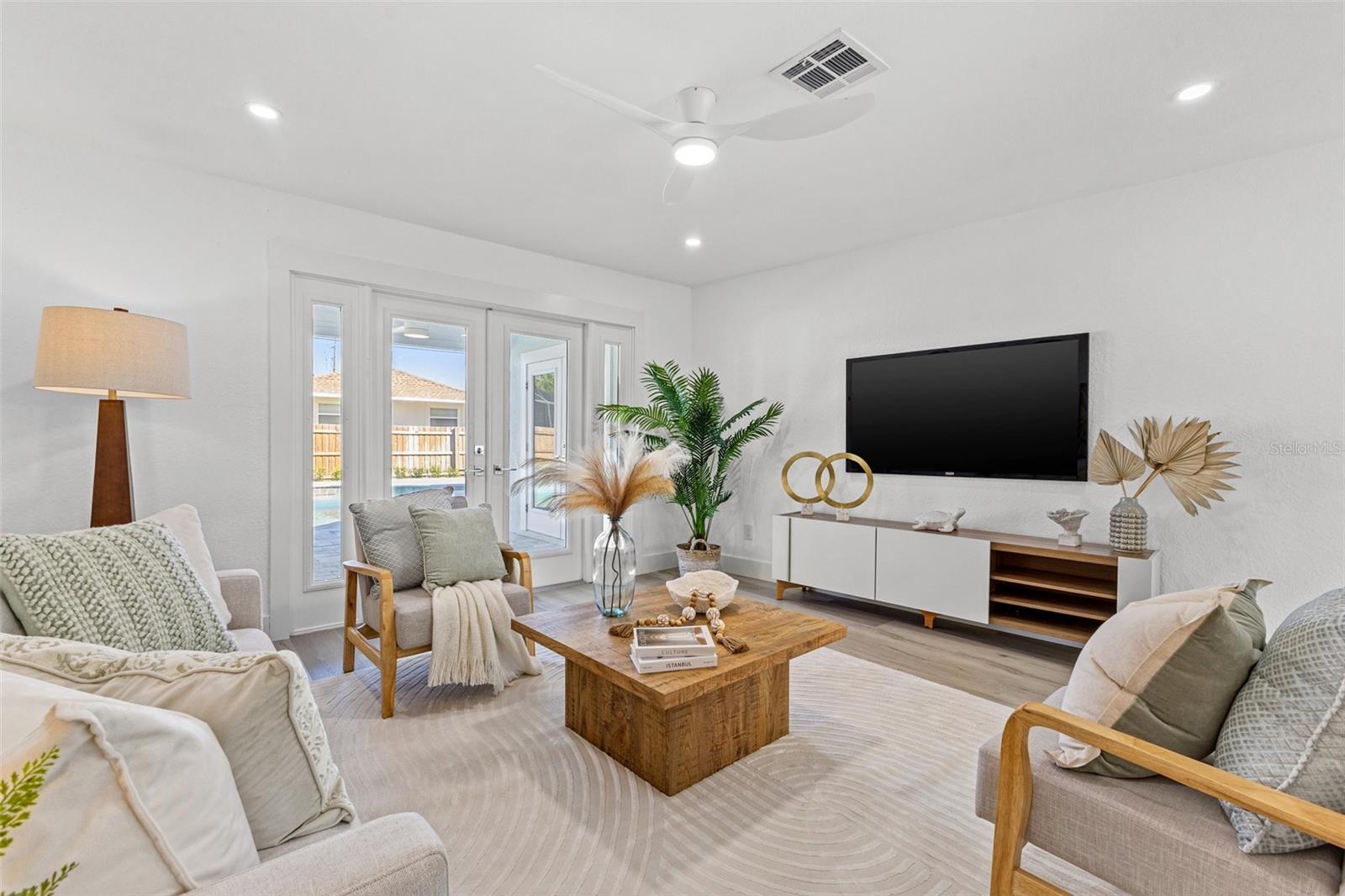 Discover your own slice of paradise at 1053 Serpentine Drive S, nestled in the highly sought-after historic neighborhood of "The Pink Streets." This beautiful residence remained high and dry during Helene and Milton. This charming area, known for its tranquil setting and rich history, is located in the southernmost part of St. Petersburg. This coveted location provides endless entertainment and a convenient lifestyle due to its effortless access to Tampa International Airport, our award winning Gulf Beaches, booming Downtown St Pete, Sunshine Skyway Bridge and the ever-evolving Skyway Marina district. You're also just a stroll away from a serene 9.5 acre city park on Tampa Bay. This 4-bedroom, 3.5-bath, 2-car garage pool home sits on an expansive lot of over a quarter-acre, offering plenty of space for your family and guests. Built in 1984 but completely revitalized, this home feels like new construction with a full suite of upgrades. In 2024, the roof, HVAC, and water heater were replaced, ensuring peace of mind for years to come. Additionally, the home boasts impact-rated windows and an impact-rated garage door, keeping it safe and dry throughout the recent hurricane season. No detail has been overlooked in this stunning renovation. The exterior shines with fresh paint, new landscaping, front and back pavers, updated fence and a resurfaced pool complete with an outdoor kitchen. Inside, the home shines with luxury vinyl plank flooring throughout, a completely remodeled high-end kitchen and bathrooms, a wet bar complete with a wine fridge and a large walk in laundry room. Other upgrades include recessed lighting throughout, custom closets in every bedroom, a whole-home water softener, and front and back irrigation systems on a private well. There's also a newly installed 20-foot double gate with shell parking, perfect for storing your boat, RV, or large trailer. If you've been searching for a turnkey, move-in ready home on a large lot in an unbeatable location, look no further. Your dream home awaits at 1053 Serpentine Drive S, in the exceptional Pink Streets neighborhood. Seize this incredibly rare opportunity today!