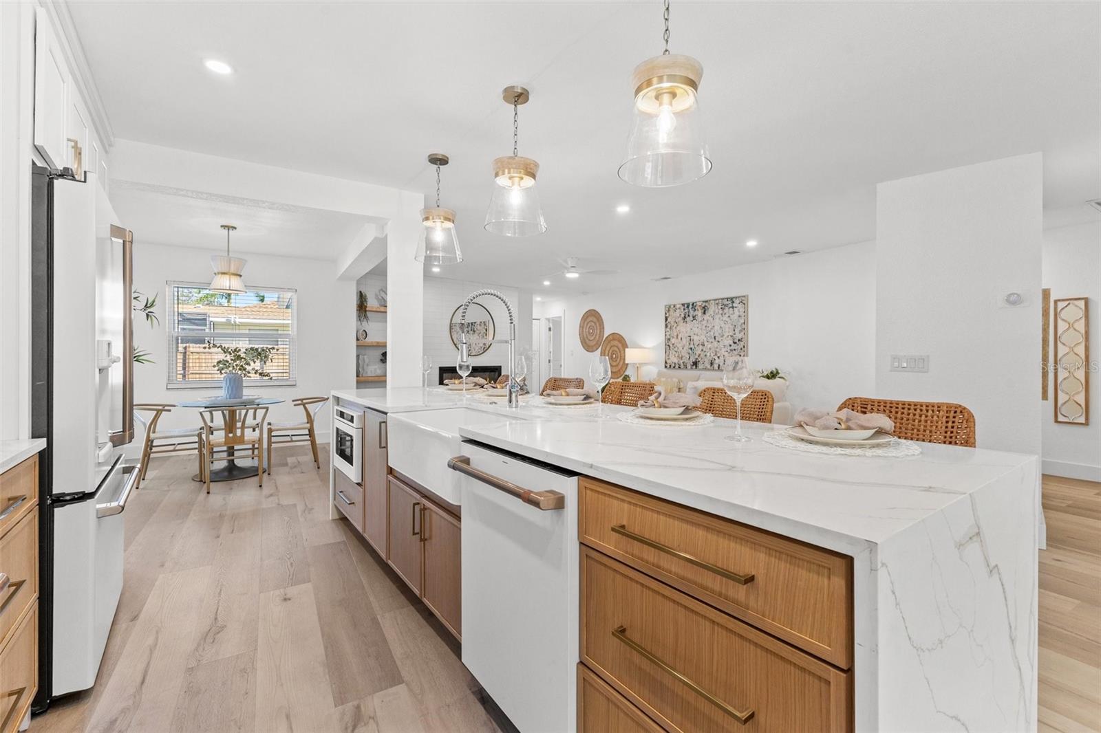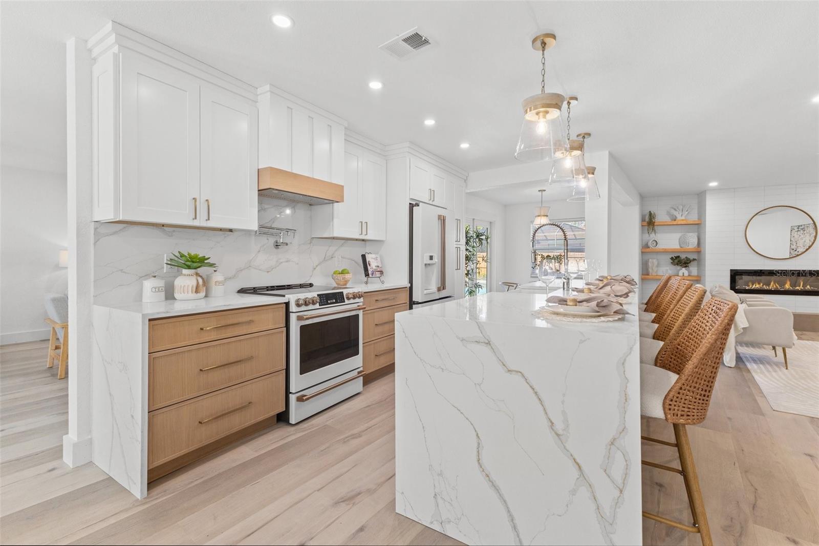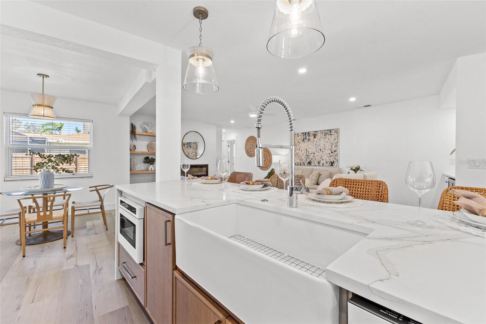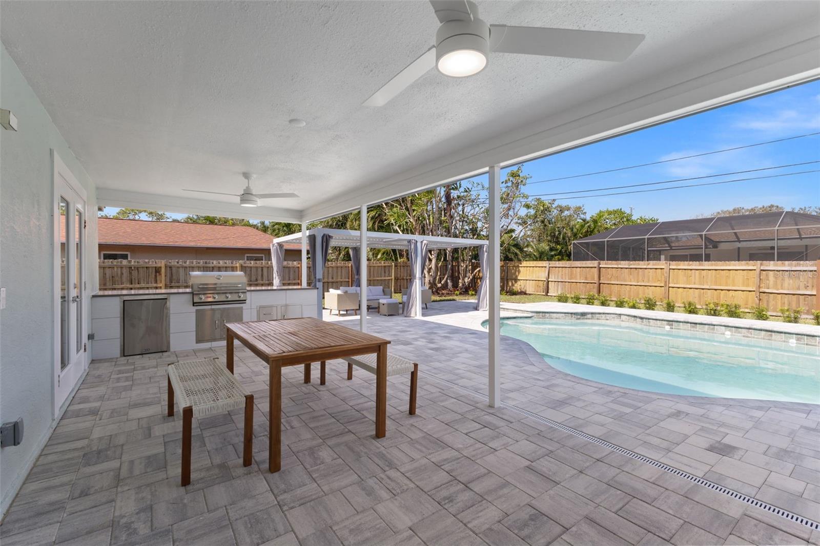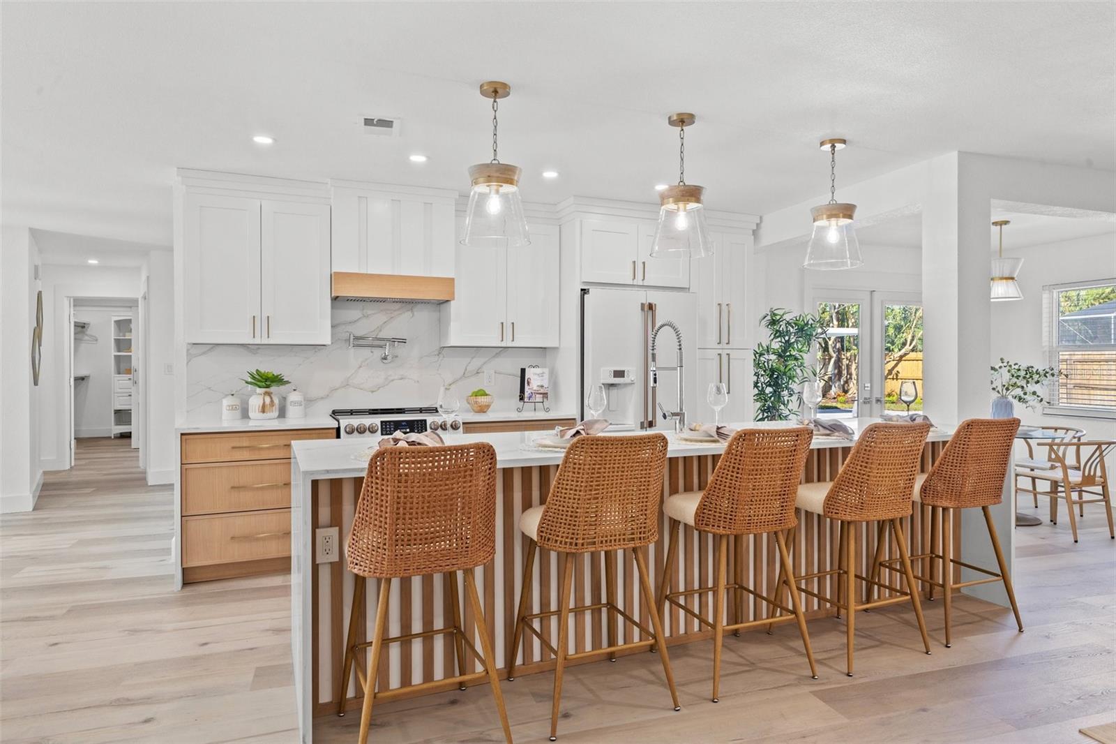 Discover your own slice of paradise at 1053 Serpentine Drive S, nestled in the highly sought-after historic neighborhood of "The Pink Streets." This beautiful residence remained high and dry during Helene and Milton. This charming area, known for its tranquil setting and rich history, is located in the southernmost part of St. Petersburg. This coveted location provides endless entertainment and a convenient lifestyle due to its effortless access to Tampa International Airport, our award winning Gulf Beaches, booming Downtown St Pete, Sunshine Skyway Bridge and the ever-evolving Skyway Marina district. You're also just a stroll away from a serene 9.5 acre city park on Tampa Bay. This 4-bedroom, 3.5-bath, 2-car garage pool home sits on an expansive lot of over a quarter-acre, offering plenty of space for your family and guests. Built in 1984 but completely revitalized, this home feels like new construction with a full suite of upgrades. In 2024, the roof, HVAC, and water heater were replaced, ensuring peace of mind for years to come. Additionally, the home boasts impact-rated windows and an impact-rated garage door, keeping it safe and dry throughout the recent hurricane season. No detail has been overlooked in this stunning renovation. The exterior shines with fresh paint, new landscaping, front and back pavers, updated fence and a resurfaced pool complete with an outdoor kitchen. Inside, the home shines with luxury vinyl plank flooring throughout, a completely remodeled high-end kitchen and bathrooms, a wet bar complete with a wine fridge and a large walk in laundry room. Other upgrades include recessed lighting throughout, custom closets in every bedroom, a whole-home water softener, and front and back irrigation systems on a private well. There's also a newly installed 20-foot double gate with shell parking, perfect for storing your boat, RV, or large trailer. If you've been searching for a turnkey, move-in ready home on a large lot in an unbeatable location, look no further. Your dream home awaits at 1053 Serpentine Drive S, in the exceptional Pink Streets neighborhood. Seize this incredibly rare opportunity today!