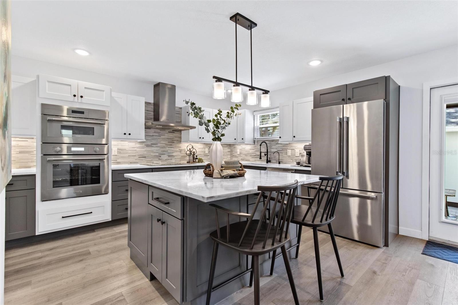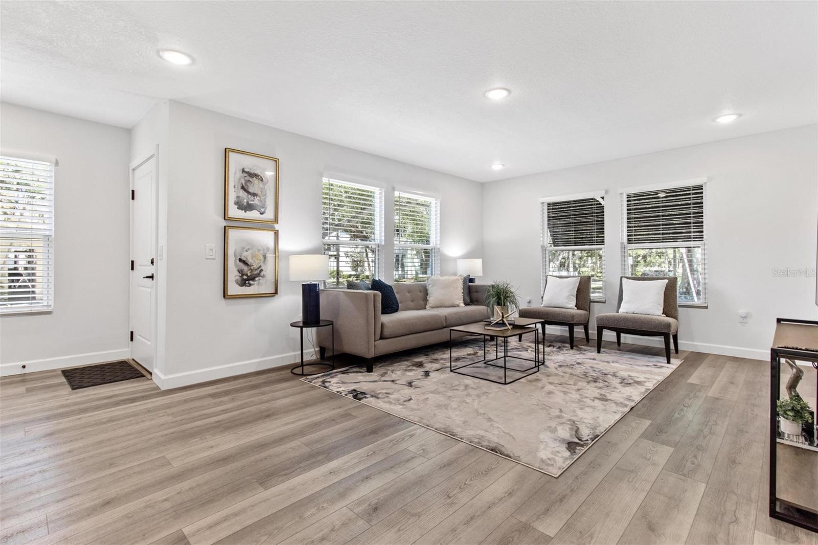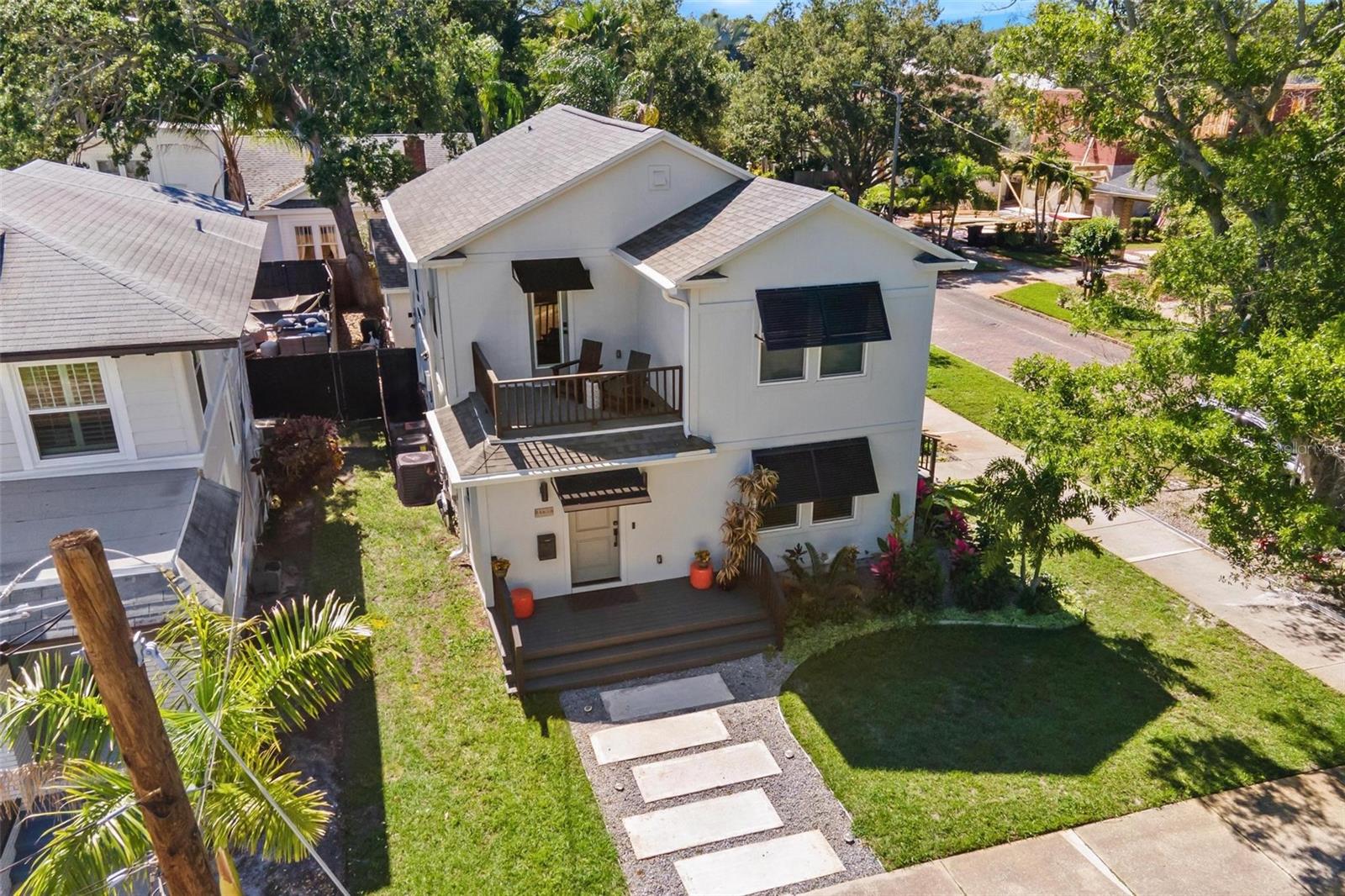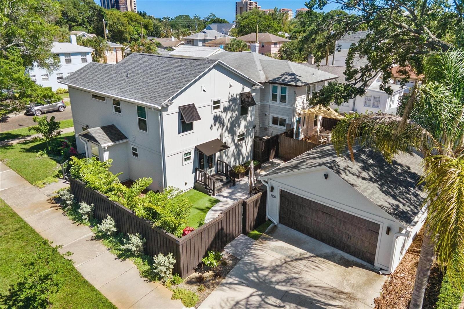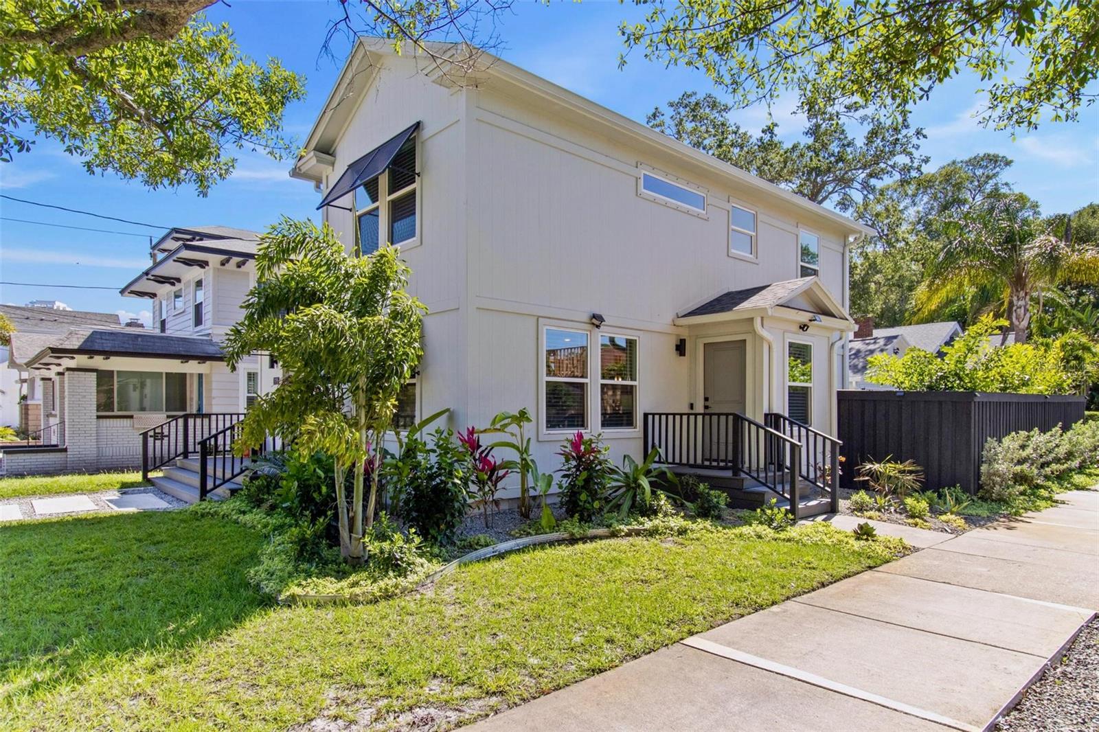 Welcome to a thoroughly renovated retreat in Old Northeast, where modernity intertwines with ancient wisdom. This exquisite home, thoughtfully designed under the guidance of an elite classical Feng Shui practitioner, offers three bedrooms, two full bathrooms, a powder room, an office, and a 2-car garage. Step inside to the first floor and discover a spacious foyer and an open-concept living area featuring a chef's kitchen equipped with stainless steel Thermador appliances, an induction cooktop, a large kitchen island with Brazilian Calcita counters, a spacious pantry, soft-closing cabinetry, and ambient lights under the cabinets. Also, enjoy an office space for work or creativity, a powder room, and a laundry room equipped with GE washer and dryer units, a sink, and cabinetry for extra convenience. All appliances and the complete home water filter system were upgraded in 2023. Ascending the magnificent floating staircase to the second floor, the primary suite offers a tranquil escape with a spa-like ensuite bathroom, complete with a standalone bathtub, floating dual vanity, a spacious walk-in closet, and a balcony. Two additional bedrooms and another full bathroom ensure comfort for family or guests. Outside, the beautifully landscaped yard features natural tropical plants, artificial turf, and elegant pavers, with ample space to add a pool. A detached 2-car garage with a vaulted ceiling provides both tranquility and practicality. Hurricane-rated windows with awnings, the roof, two HVAC units, plumbing, electric, and a tankless water heater were fully replaced in 2022. Nestled in the heart of Old Northeast, in a NO-Flood zone location, this home embraces the charm of tree-lined streets, historic architecture, and a close-knit community. With easy access to downtown amenities, parks, waterfront promenades, and local shops and restaurants, every convenience is within reach. Schedule your showing today and embark on a journey of harmonious living in one of St. Petersburg's most desirable neighborhoods!