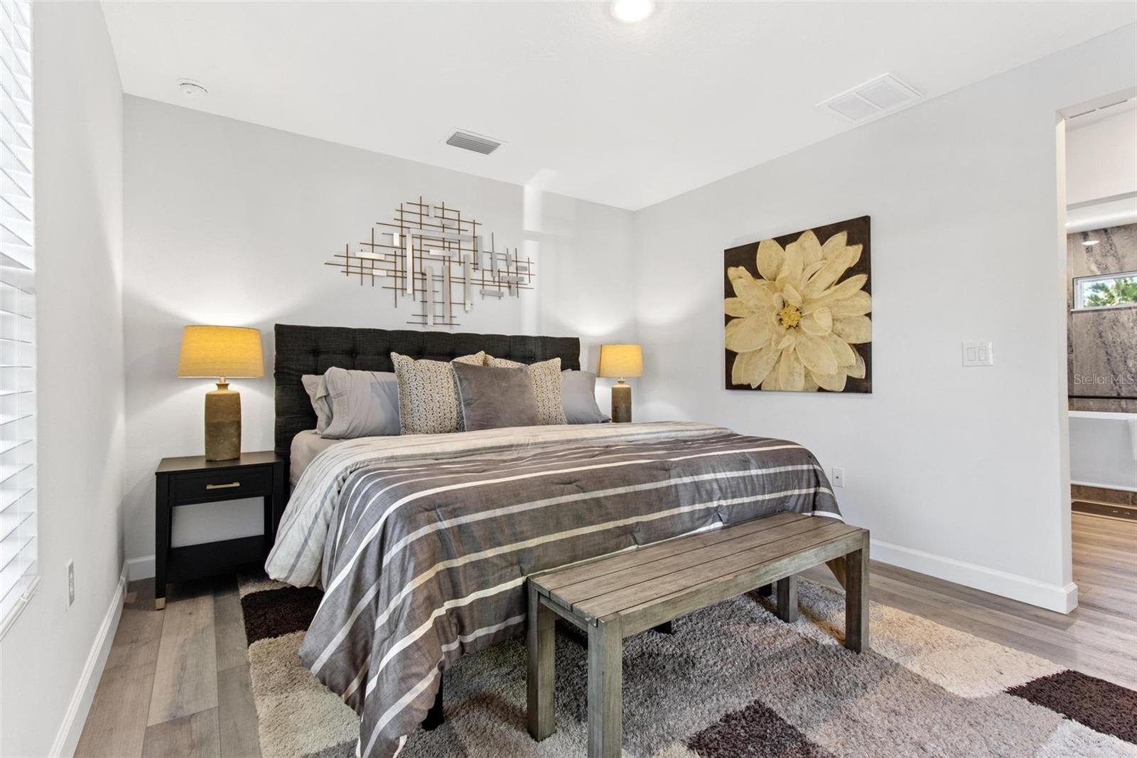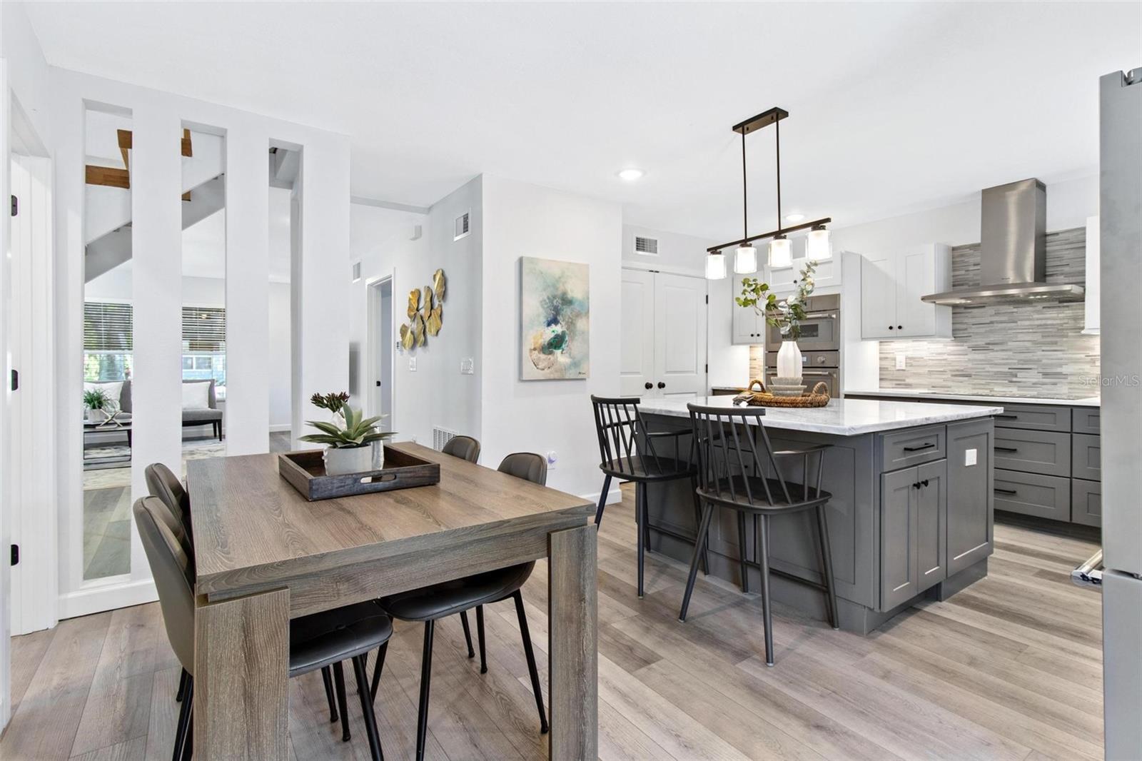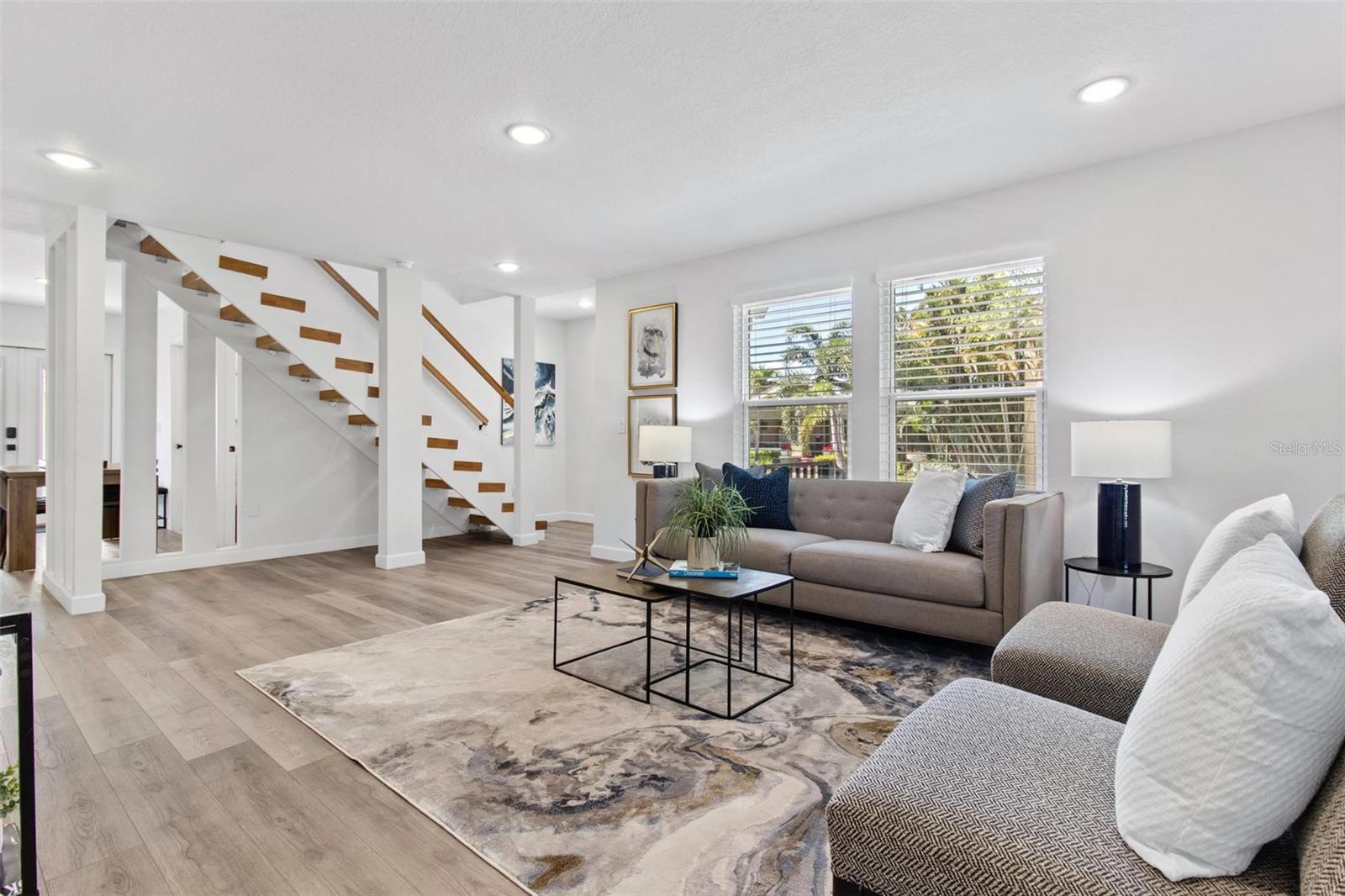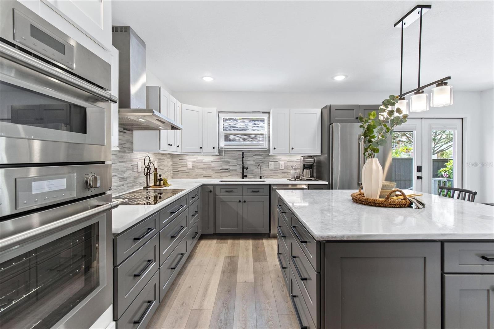 Welcome to a thoroughly renovated retreat in Old Northeast, where modernity intertwines with ancient wisdom. This exquisite home, thoughtfully designed under the guidance of an elite classical Feng Shui practitioner, offers three bedrooms, two full bathrooms, a powder room, an office, and a 2-car garage. Step inside to the first floor and discover a spacious foyer and an open-concept living area featuring a chef's kitchen equipped with stainless steel Thermador appliances, an induction cooktop, a large kitchen island with Brazilian Calcita counters, a spacious pantry, soft-closing cabinetry, and ambient lights under the cabinets. Also, enjoy an office space for work or creativity, a powder room, and a laundry room equipped with GE washer and dryer units, a sink, and cabinetry for extra convenience. All appliances and the complete home water filter system were upgraded in 2023. Ascending the magnificent floating staircase to the second floor, the primary suite offers a tranquil escape with a spa-like ensuite bathroom, complete with a standalone bathtub, floating dual vanity, a spacious walk-in closet, and a balcony. Two additional bedrooms and another full bathroom ensure comfort for family or guests. Outside, the beautifully landscaped yard features natural tropical plants, artificial turf, and elegant pavers, with ample space to add a pool. A detached 2-car garage with a vaulted ceiling provides both tranquility and practicality. Hurricane-rated windows with awnings, the roof, two HVAC units, plumbing, electric, and a tankless water heater were fully replaced in 2022. Nestled in the heart of Old Northeast, in a NO-Flood zone location, this home embraces the charm of tree-lined streets, historic architecture, and a close-knit community. With easy access to downtown amenities, parks, waterfront promenades, and local shops and restaurants, every convenience is within reach. Schedule your showing today and embark on a journey of harmonious living in one of St. Petersburg's most desirable neighborhoods!