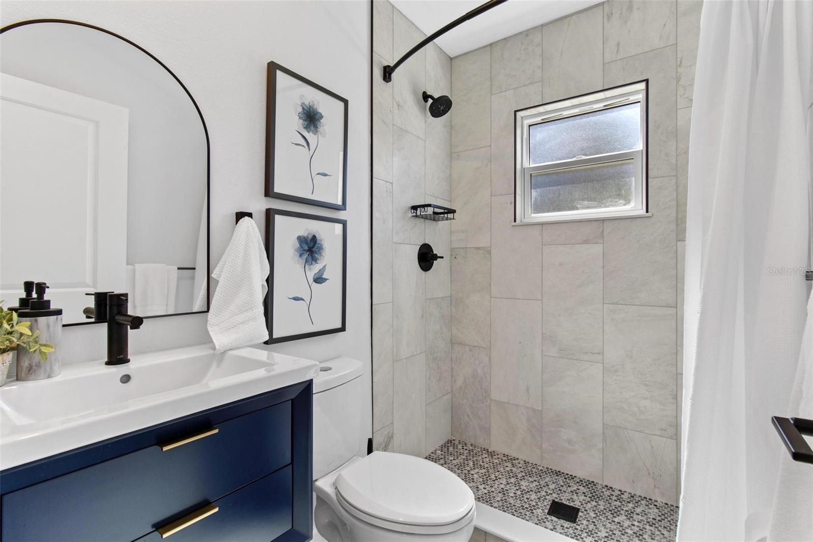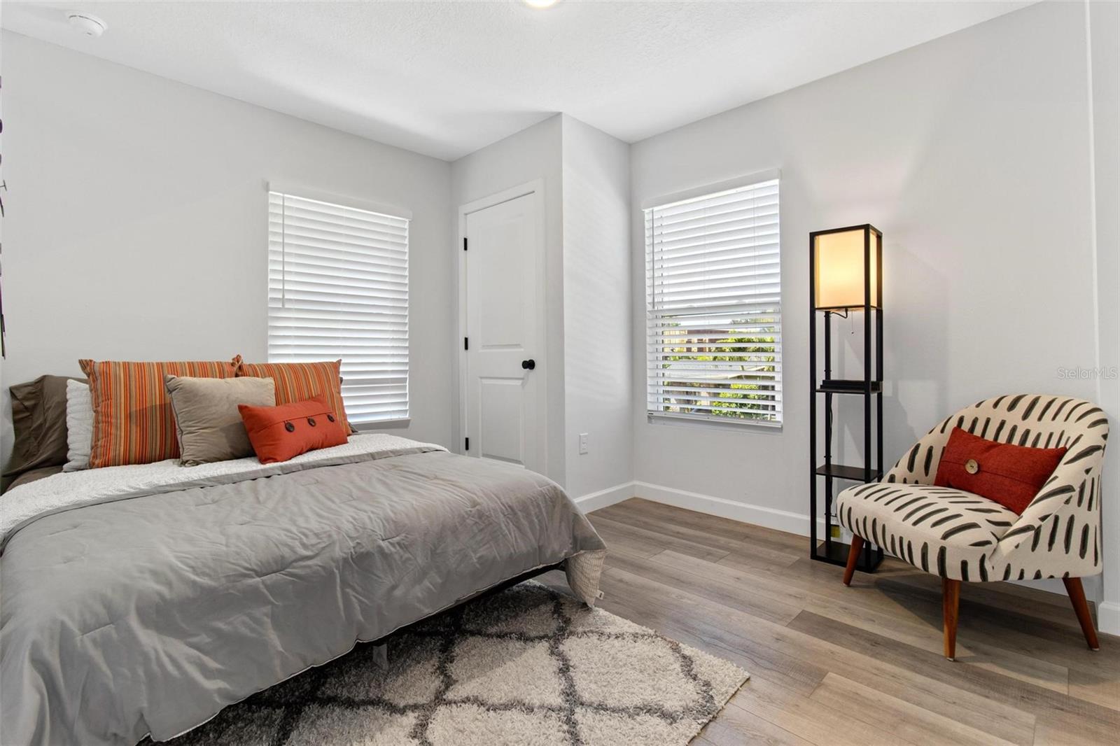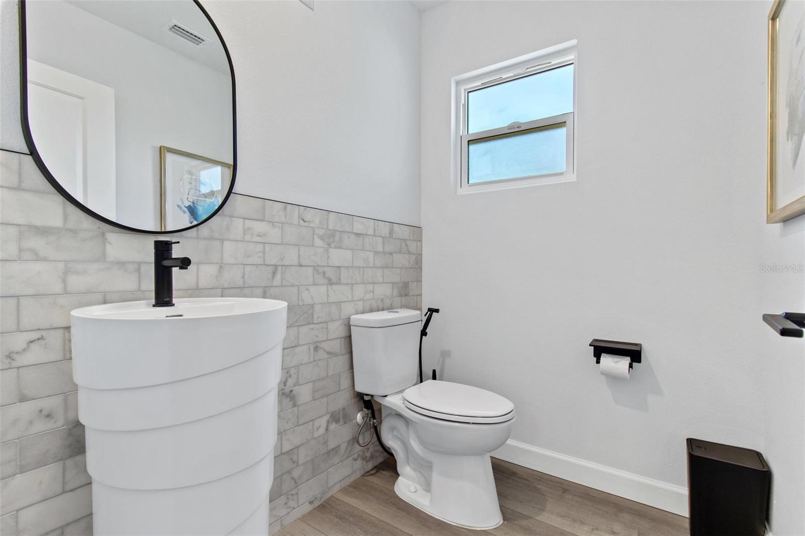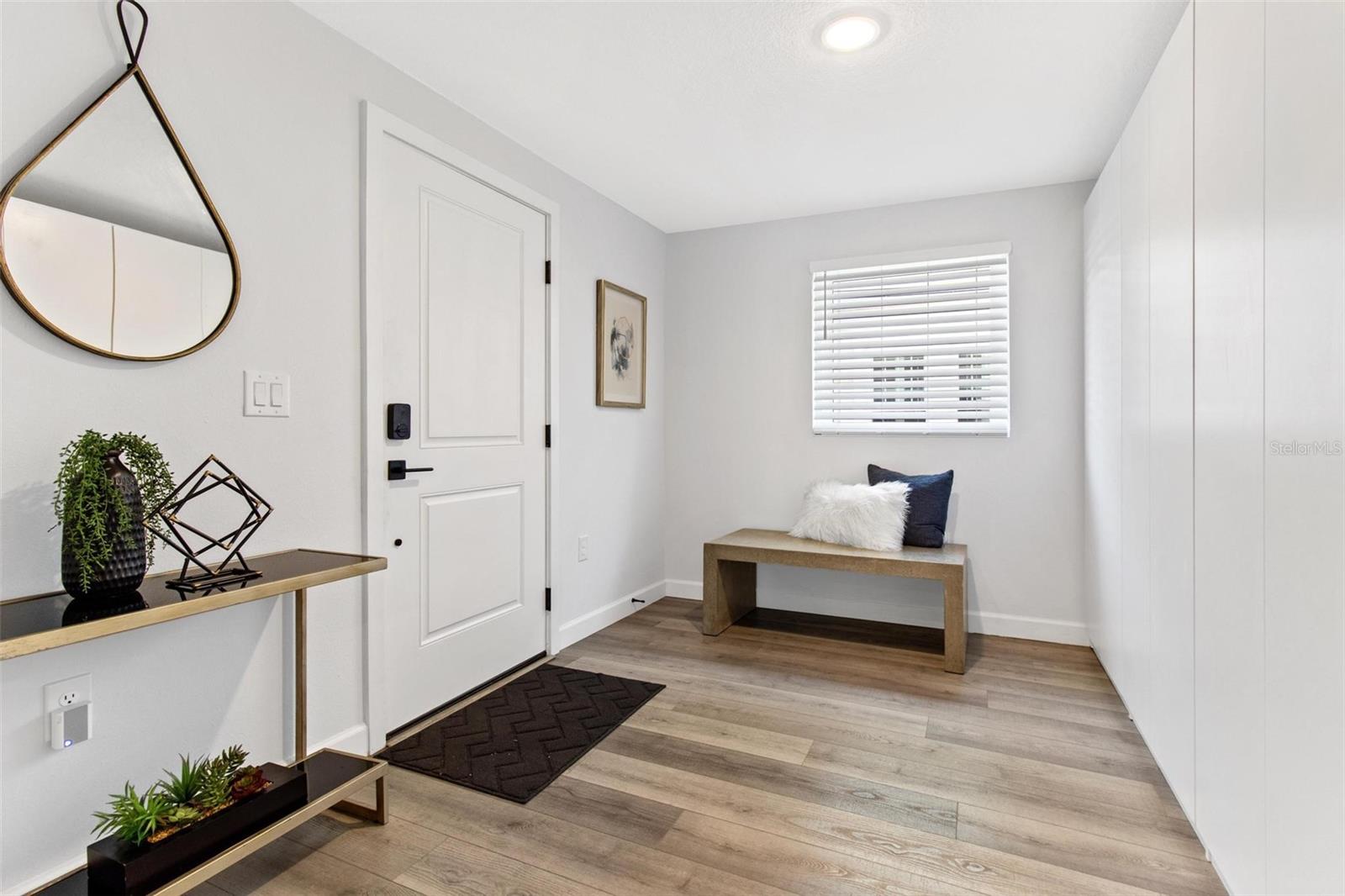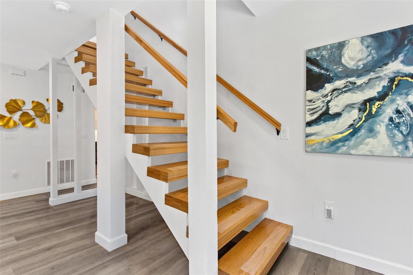 Welcome to a thoroughly renovated retreat in Old Northeast, where modernity intertwines with ancient wisdom. This exquisite home, thoughtfully designed under the guidance of an elite classical Feng Shui practitioner, offers three bedrooms, two full bathrooms, a powder room, an office, and a 2-car garage. Step inside to the first floor and discover a spacious foyer and an open-concept living area featuring a chef's kitchen equipped with stainless steel Thermador appliances, an induction cooktop, a large kitchen island with Brazilian Calcita counters, a spacious pantry, soft-closing cabinetry, and ambient lights under the cabinets. Also, enjoy an office space for work or creativity, a powder room, and a laundry room equipped with GE washer and dryer units, a sink, and cabinetry for extra convenience. All appliances and the complete home water filter system were upgraded in 2023. Ascending the magnificent floating staircase to the second floor, the primary suite offers a tranquil escape with a spa-like ensuite bathroom, complete with a standalone bathtub, floating dual vanity, a spacious walk-in closet, and a balcony. Two additional bedrooms and another full bathroom ensure comfort for family or guests. Outside, the beautifully landscaped yard features natural tropical plants, artificial turf, and elegant pavers, with ample space to add a pool. A detached 2-car garage with a vaulted ceiling provides both tranquility and practicality. Hurricane-rated windows with awnings, the roof, two HVAC units, plumbing, electric, and a tankless water heater were fully replaced in 2022. Nestled in the heart of Old Northeast, in a NO-Flood zone location, this home embraces the charm of tree-lined streets, historic architecture, and a close-knit community. With easy access to downtown amenities, parks, waterfront promenades, and local shops and restaurants, every convenience is within reach. Schedule your showing today and embark on a journey of harmonious living in one of St. Petersburg's most desirable neighborhoods!