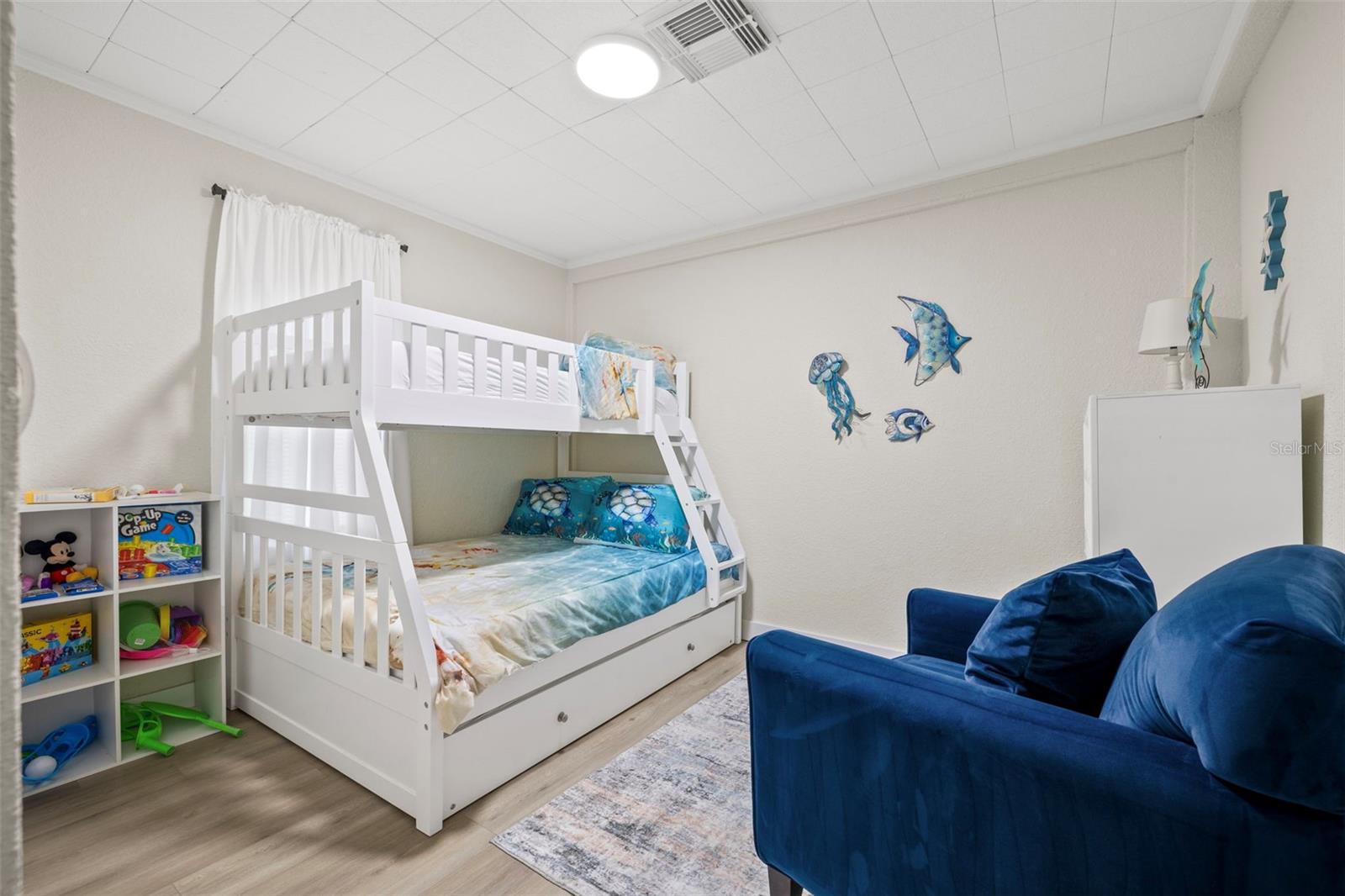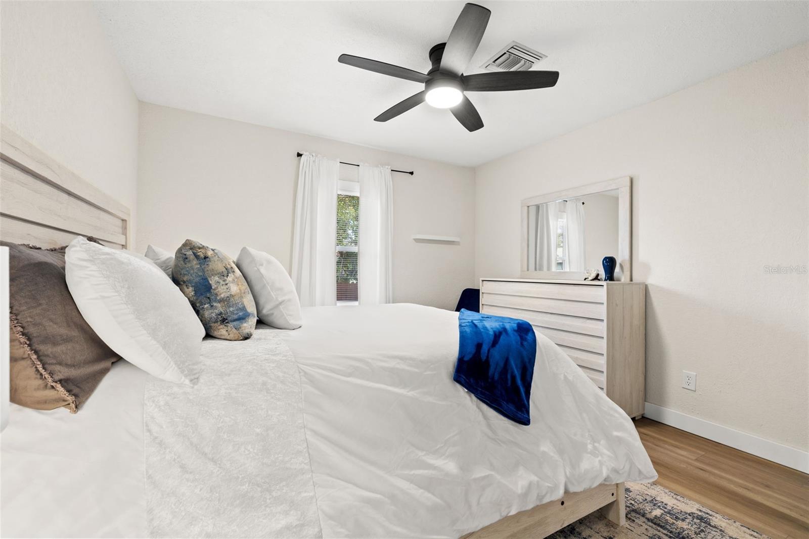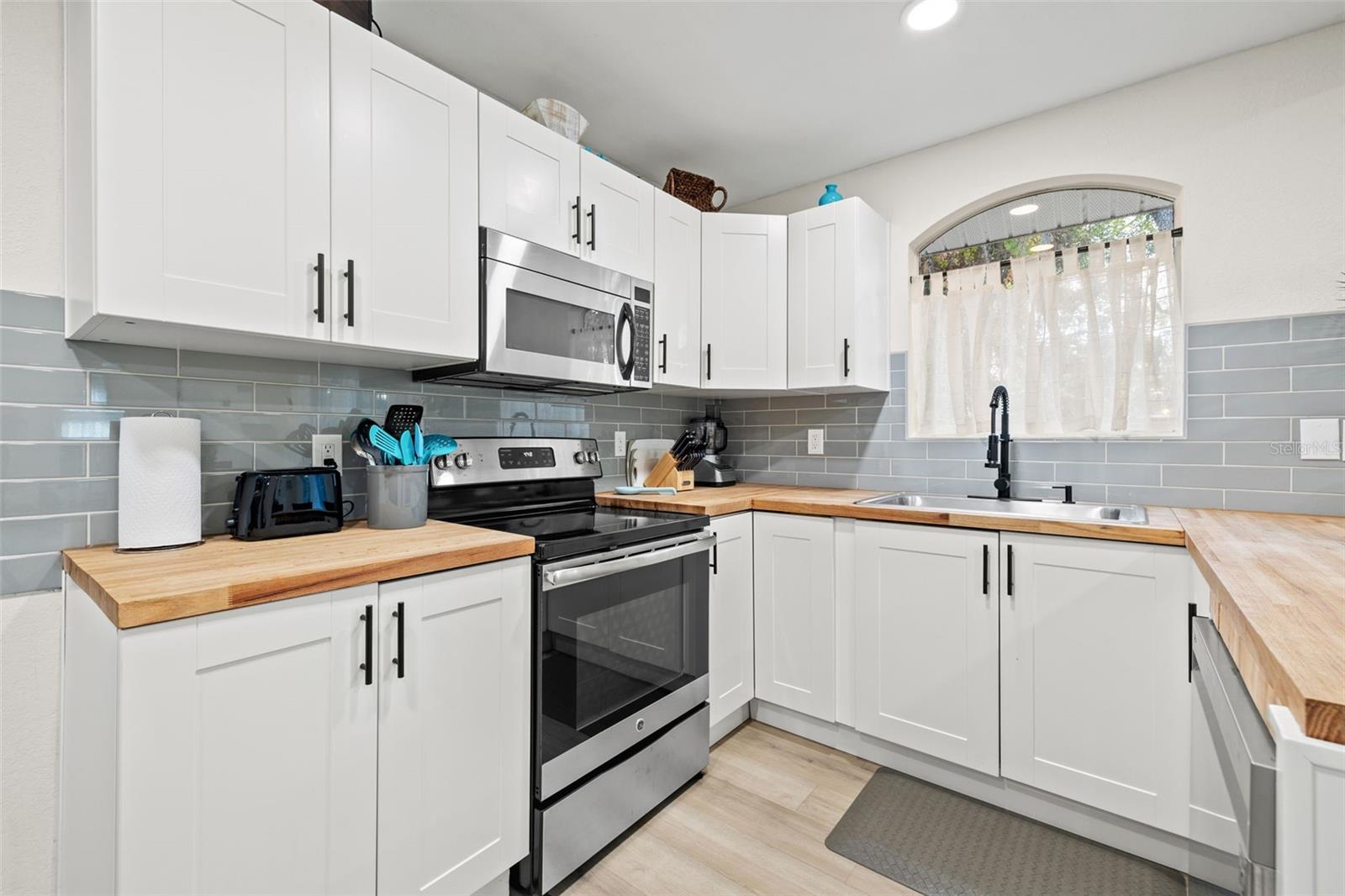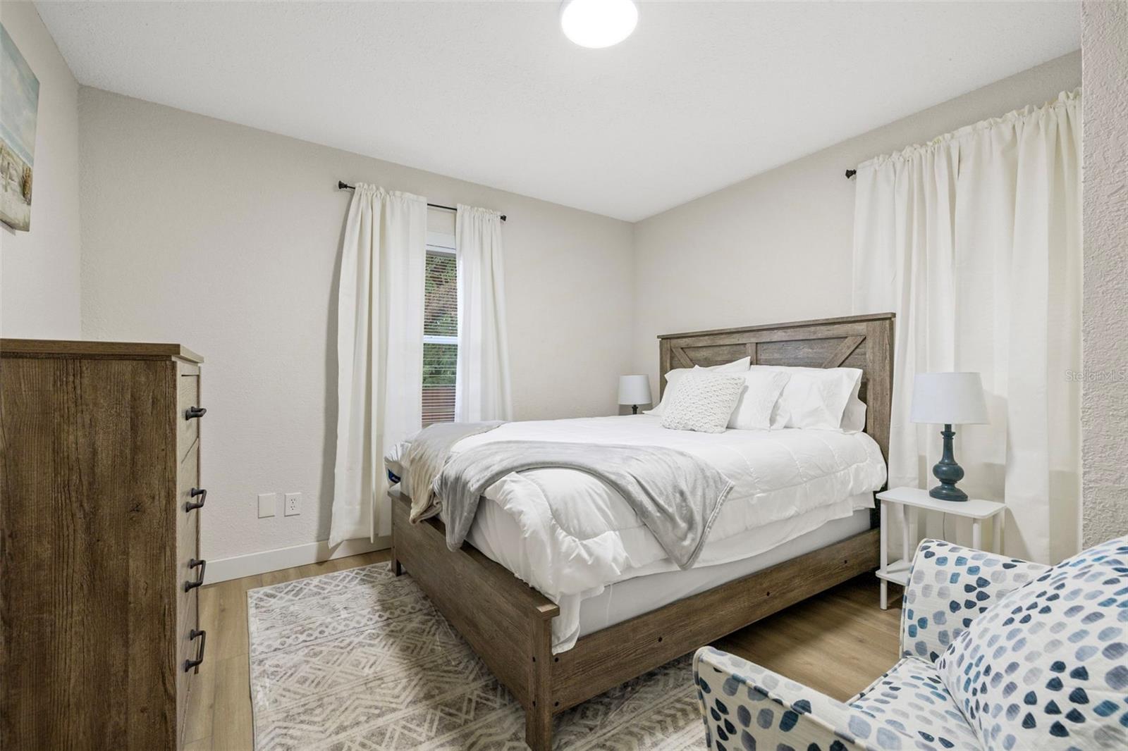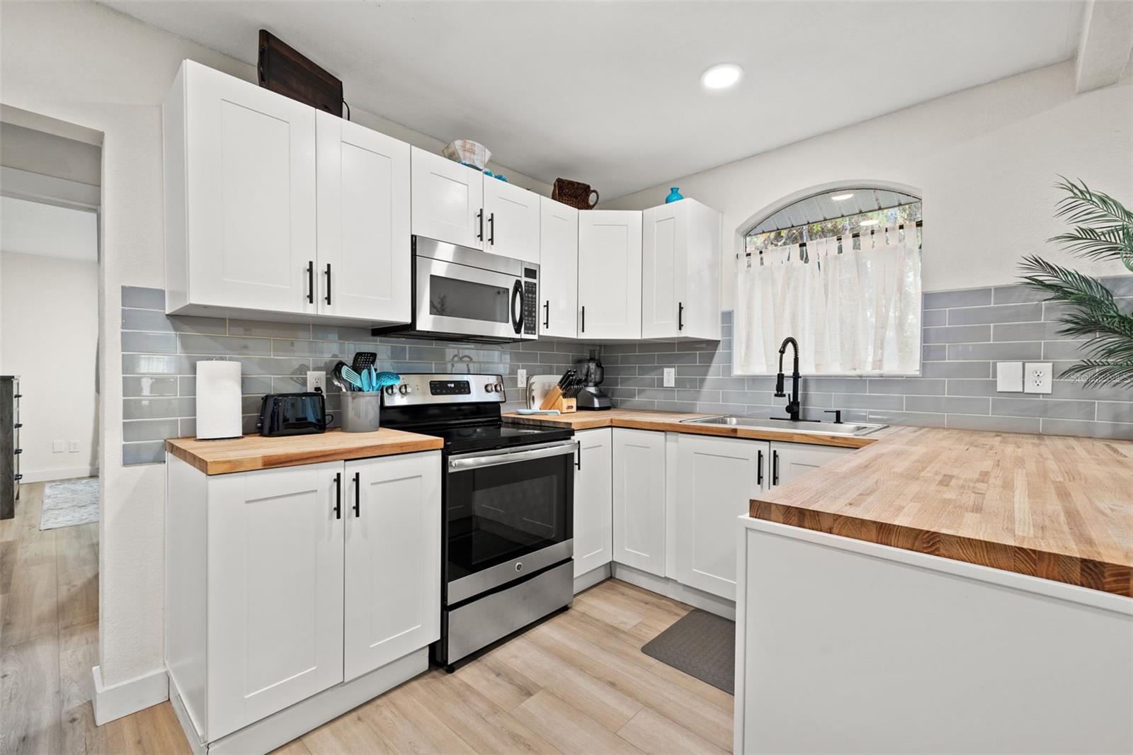 Welcome to 6297 29th St N in North St. Pete! This fully renovated, turnkey 4-bedroom, 2-bathroom bungalow is ready for its next chapter. With nearly 1,500 square feet of thoughtfully designed living space and located in a non-flood zone, this home is a rare find. From the moment you arrive, you'll fall in love with the charming curb appeal, complete with a shell driveway and inviting front porch. Inside, the light-filled, open floor plan seamlessly connects the living room, dining area, and kitchen, creating an ideal space for entertaining and everyday living. The kitchen is a chef's dream, boasting butcher block countertops, abundant cabinetry, a deep stainless-steel sink and a bar seating area. A new 2023 sliding glass door leads to a stylish side deck, perfect for al fresco dining or relaxing outdoors. The split-bedroom floor plan offers privacy and convenience. Two bedrooms and a full bathroom are situated at the front of the home, while the primary suite and a fourth bedroom are tucked towards the back. The primary suite is a true retreat, featuring a custom walk-in closet and an ensuite bath with a shower/tub combo and a spacious vanity. A private exterior door from the primary suite offers the potential for a separate in-law suite or private entrance. This property is not just a perfect home for owner-occupants but also a savvy investment opportunity. Zoned as unincorporated, it allows for short-term rentals, making it an excellent option for Airbnb or other rental platforms. Major upgrades include a new roof (2022), new HVAC system (2022), new flooring, all-new sub flooring, and luxury vinyl plank flooring throughout the home for a modern, durable finish. Don't miss your chance to own this exceptional property that blends modern comforts with timeless charm and outstanding investment potential. Schedule your showing today and make 6297 29th St N your new address!