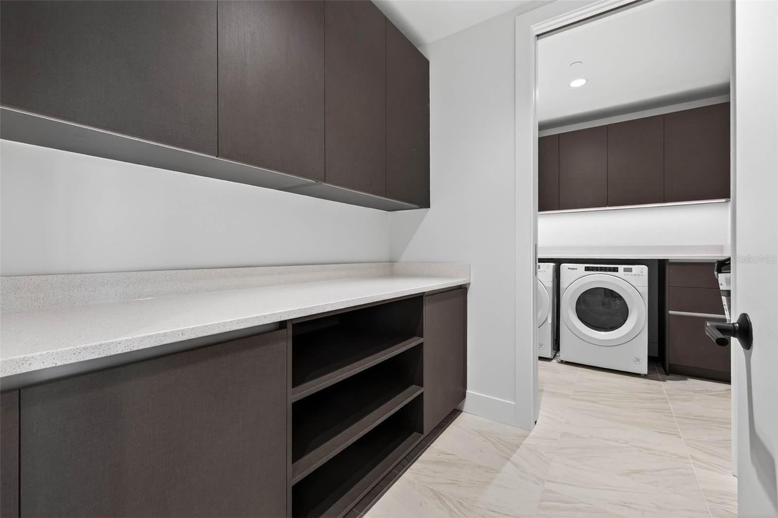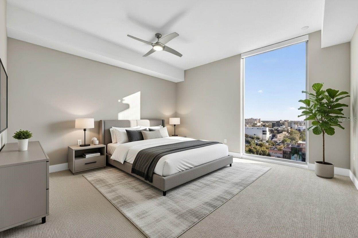 A must see to fully appreciate why this 1 bedroom, 1.5 bathroom + den was the first floor plan to sell out during pre-construction. The Opal offers 1,550 square feet of interior space, and #1106 includes over $69,000 in thoughtful upgrades, setting it apart as one of the most upgraded units in the building. It lives larger than most two-bedroom condos downtown and is the true definition of turnkey. Inside, 9.5' ceilings, floor-to-ceiling windows, and porcelain tile flooring create a bright, open flow. The kitchen anchors the space with a waterfall-edge quartz island, Bosch panel-ready appliances, and generous storage: clean, timeless, and functional. One of the standout features is the custom hallway cabinetry leading into the laundry area, adding everyday storage and workspace you simply don't get in the standard Opal. The owner's suite is calm and comfortable with upgraded Berber carpet, electric blinds, a spa-like bathroom with a seamless walk-in shower, and a fully custom closet. Throughout the home, custom interior paint, three upgraded ceiling fans, and quality finishes add to the polished feel. The den has been fully customized with a built-in Murphy bed wall unit, making it an ideal guest space or home office without sacrificing aesthetics. A mounted 75" Samsung TV is also included. One of the major bonuses of this unit would be the two deeded parking spaces - an increasingly rare and valuable perk downtown. As a Reflection resident, you'll enjoy access to the iconic rooftop and 18th-floor amenities including a heated saltwater pool and spa, fitness center, sauna, outdoor kitchen and wet bar, resident social club, panoramic city and bay views, and golf cart shuttle service. The building also features hospital-grade air filtration, water softening, and secure touchless entry. Located in the quiet Mirror Lake neighborhood just blocks from Central Avenue, Unit 1106 offers a low-maintenance, high-quality downtown lifestyle without compromise. If you're looking for a unit that truly stands apart, this one is priced to sell and truly delivers.