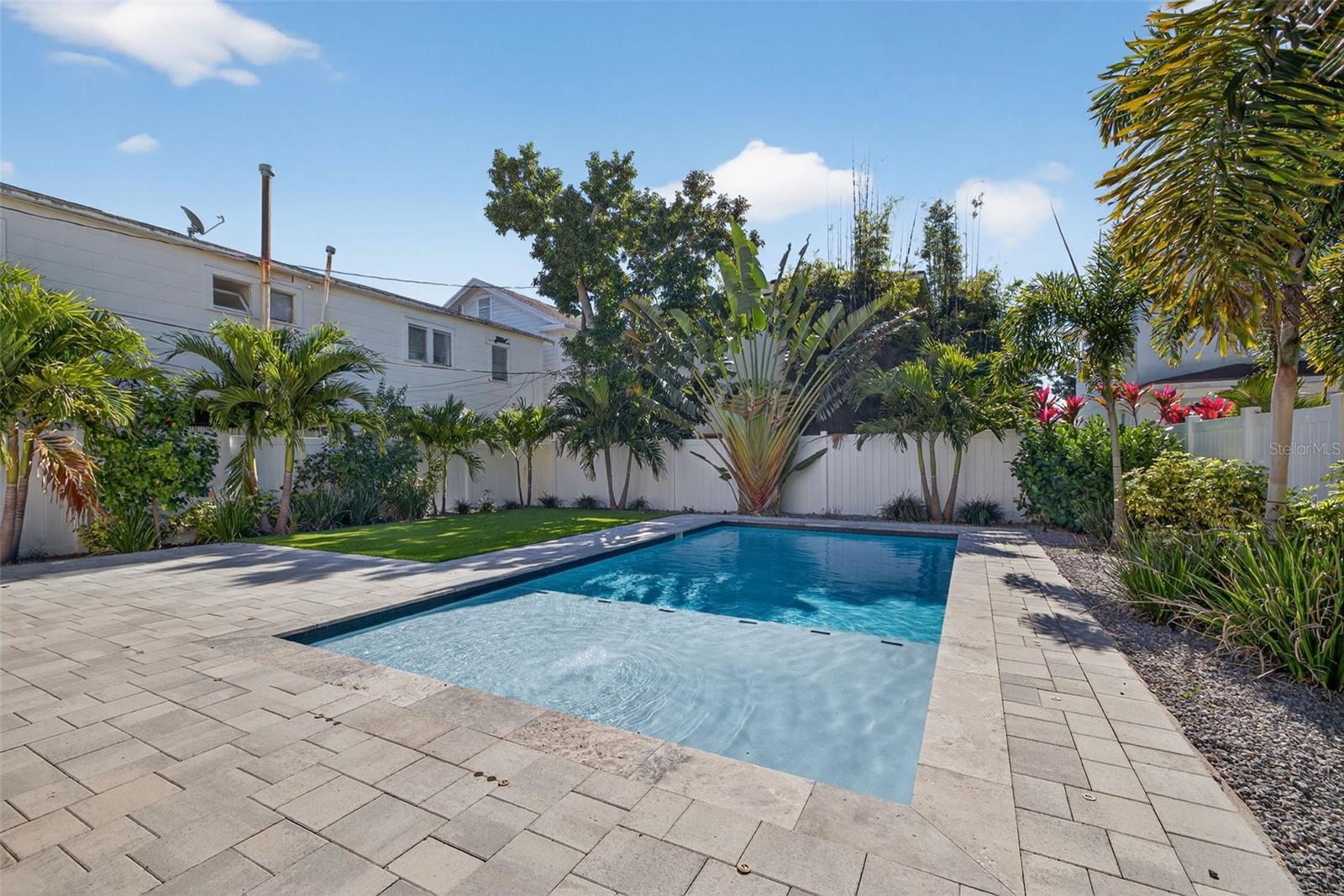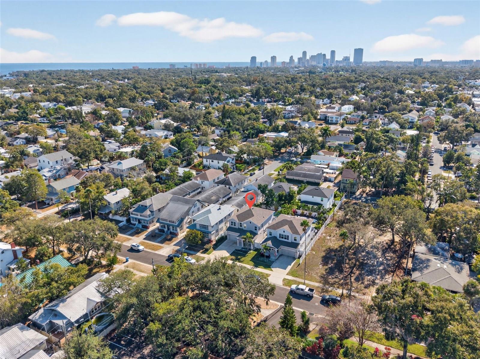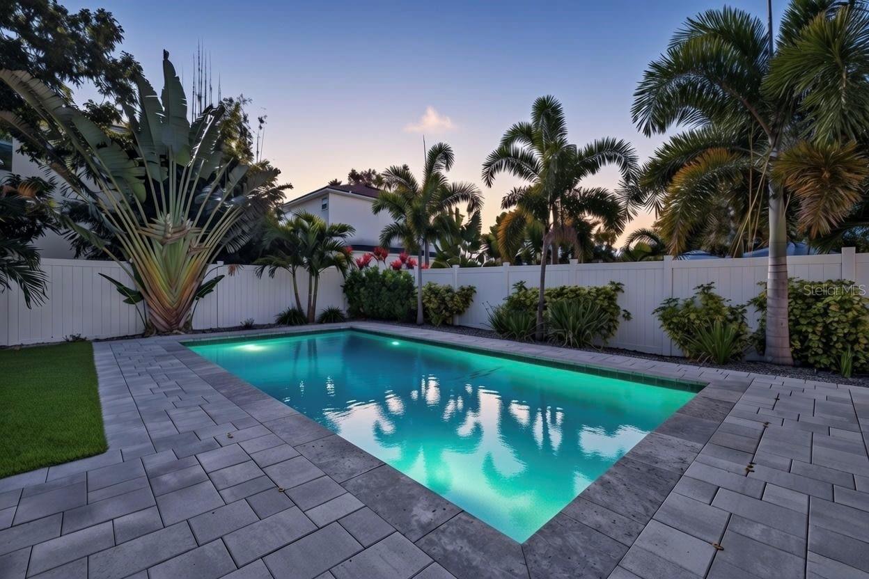 Under contract-accepting backup offers. Here's a fantastic opportunity to own a newer-construction home in a part of St. Pete where that's hard to find. Built in 2022 by David Weekley, this one has all the modern features you want plus a backyard that feels like a resort. In 2023, the owners added a heated saltwater pool, mature lush landscaping, and turf, so the whole outdoor space is already done and absolutely gorgeous. The floor plan is super functional. Downstairs, you have a guest bedroom and full bath up front, a color-drenched office with French doors, and a bright open living space where the kitchen flows right into the dining and living areas. Tons of natural light and great views of the pool. The kitchen is light and airy with plenty of cabinetry, quartz countertops, a pantry, and a large island. There's also a built-in drop zone right as you come in from the garage--plus epoxy garage floors, which are always a win. Upstairs, the layout is ideal with a split floor plan. The primary bedroom is huge and features a custom accent wall, tray ceilings, an ensuite bath with dual vanities, and a fully customized walk-in closet. The loft makes a perfect second living space or playroom, and you'll also find two more generously sized bedrooms, a full bathroom, and a laundry room with cabinetry. You're in a non-flood and non-evacuation zone and in an amazing walkable location--Crescent Lake, the new Aldi, Rollin' Oats, Pineapple Espresso, Fresh Market, Trader Joe's... it's all right there. If you've been waiting for something move-in ready, modern, and close to everything St. Pete has to offer, this is the one. Reach out to schedule your private tour.
