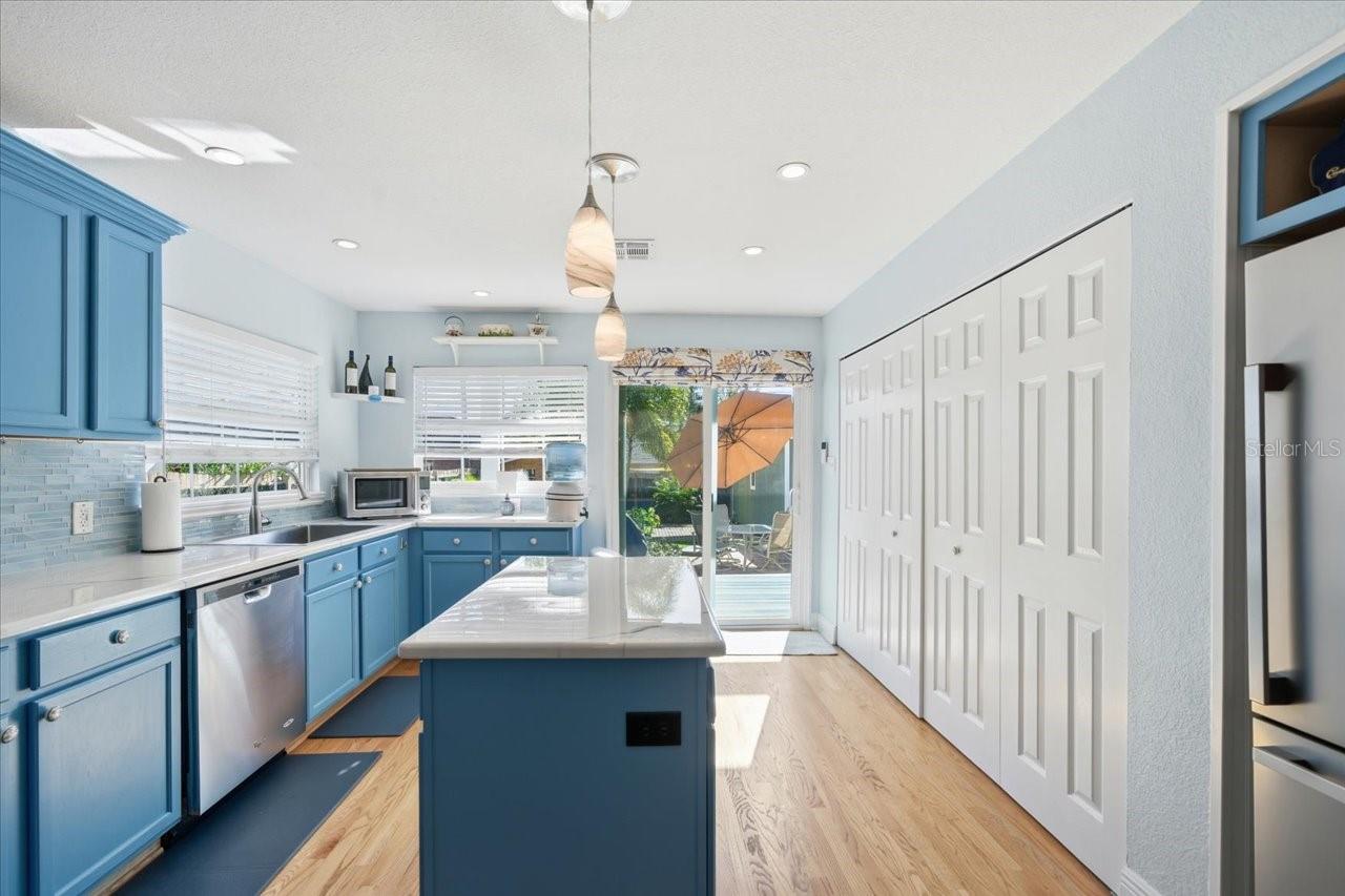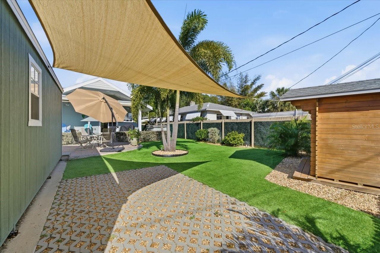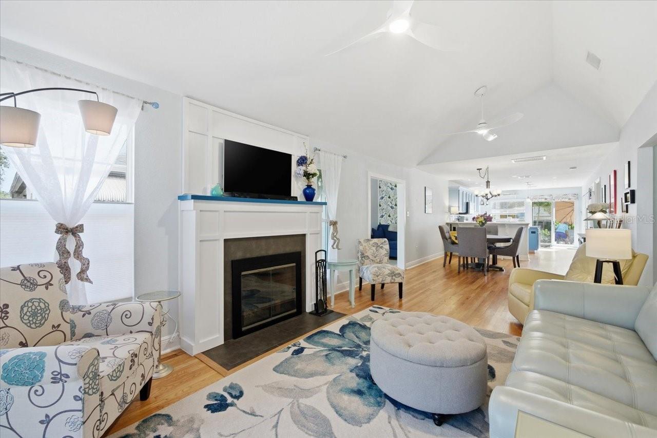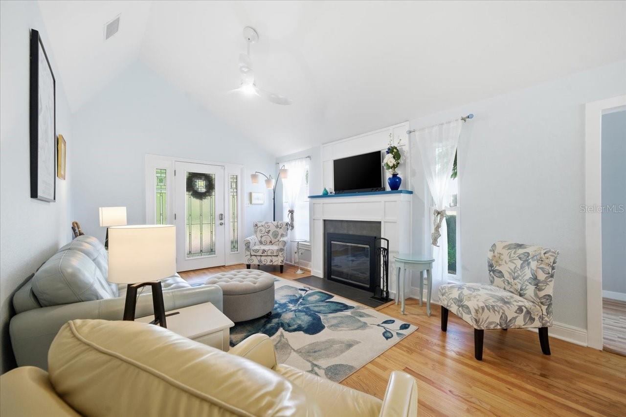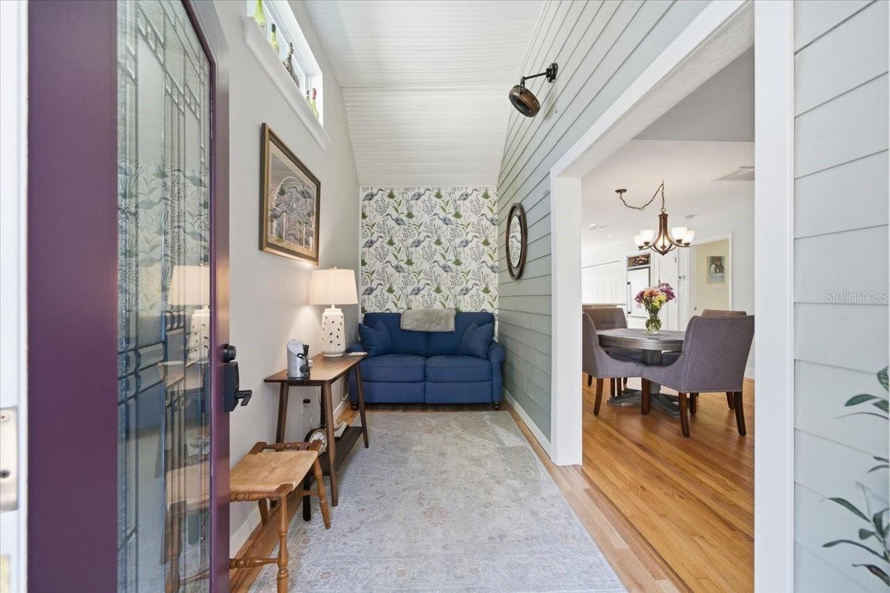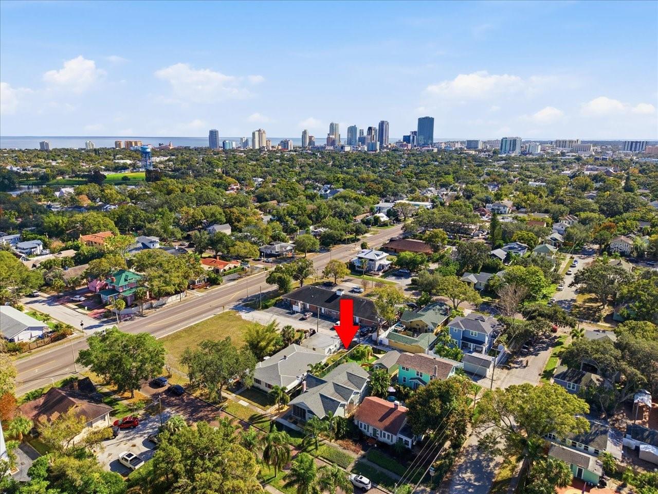 Welcome to a home where every detail has been thoughtfully reimagined. Your experience begins at the stylish new entry, featuring a hurricane-rated door (2024) and side-panel window. The original entryway has been cleverly transformed into a private screened-in patio, perfect for peaceful morning coffees. Step inside to find a light-filled living room boasting vaulted ceilings and the home's original wood-burning fireplace. To your left, the guest suite is a showstopper with its own vaulted ceilings and a massive bay window with a deep ledge--ideal for a reading nook or a plant lover's paradise. This room maximizes space with a built-in Murphy bed and an oversized walk-in closet. The heart of the home is the stunning kitchen, featuring farmhouse-style aesthetics and an island centerpiece. The granite countertops have been expertly finished with epoxy, providing a designer look that's easy to maintain. Nearby, the massive primary suite serves as a true retreat, featuring a spa-like bath with a jetted tub, walk-in shower, and dual sinks. Step through new sliding glass doors (2024), either from the kitchen or the primary bedroom, into your own private backyard oasis. Designed for low-maintenance luxury, the yard features turf, pavers all surrounded by live greenery kept lush by a Rain Bird micro-irrigation system. Relax on the deck under custom sun shades, soak in the working hot tub, or utilize the gorgeous hand-built Norwegian Spruce shed. Located in an ADU-friendly neighborhood with alley access, this property offers the rare potential to build an additional dwelling unit. With a 2021 garage with a workbench, and a reinforced turf-lock parking pad, this home is as smart as it is beautiful.