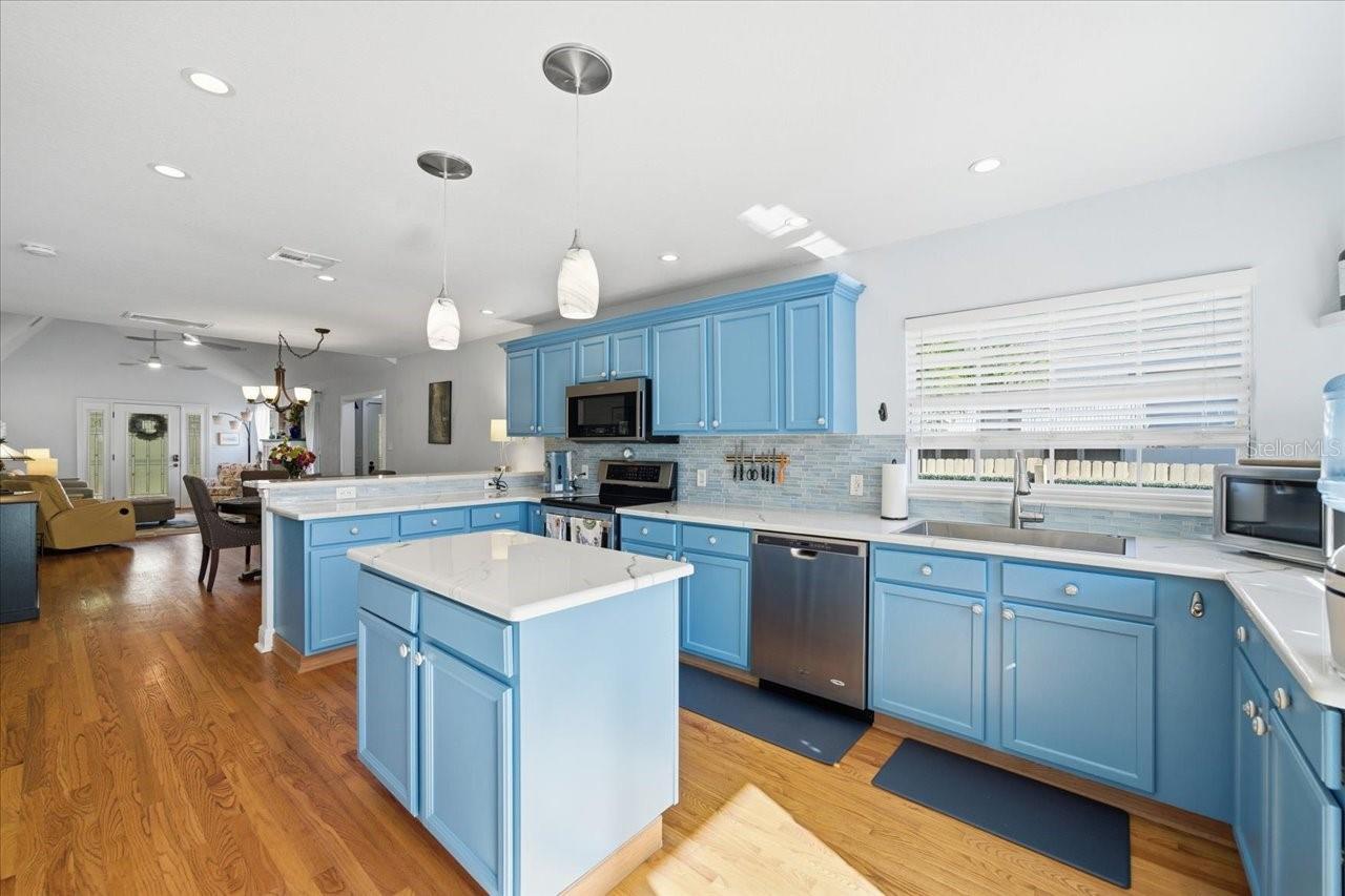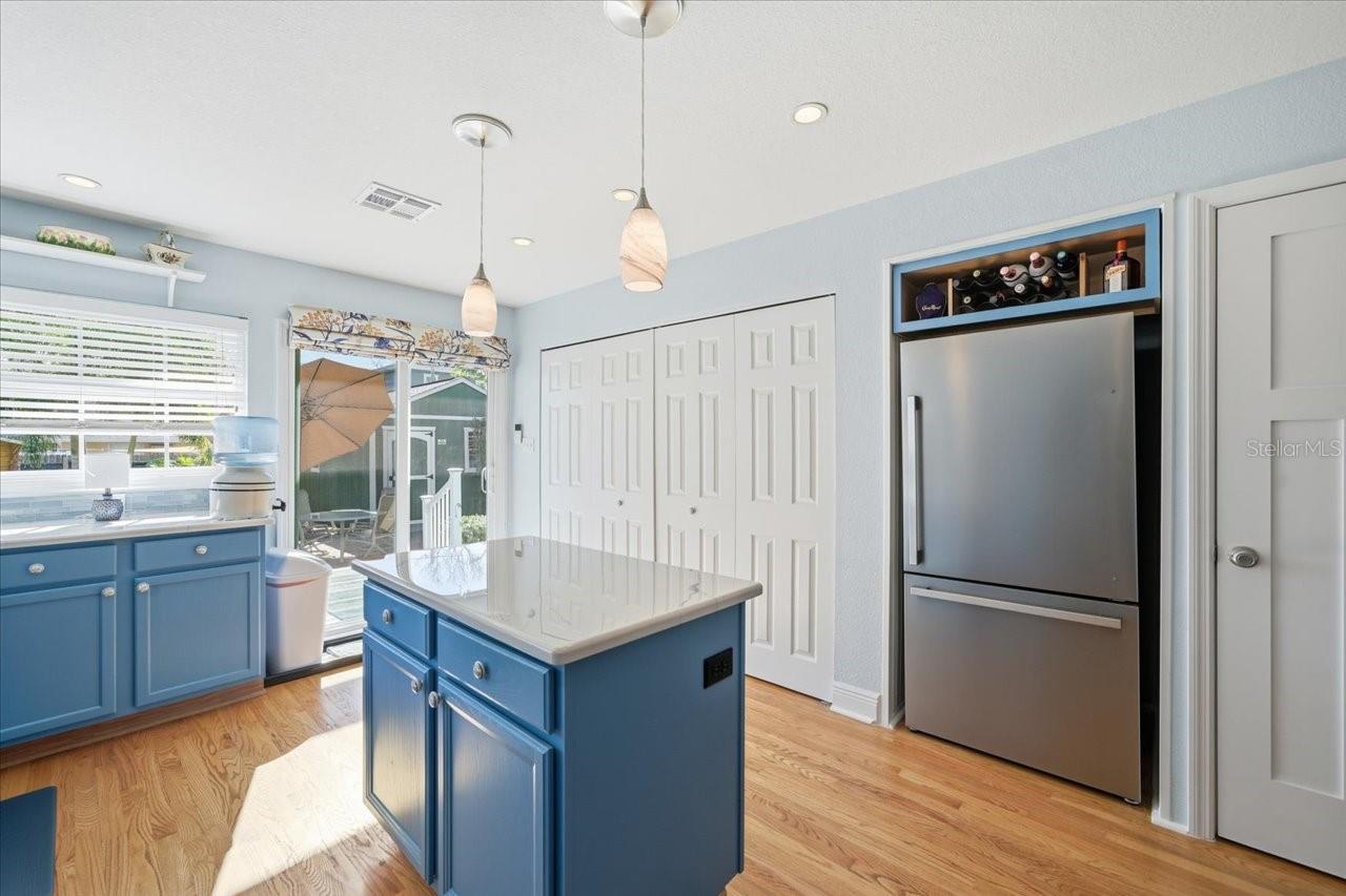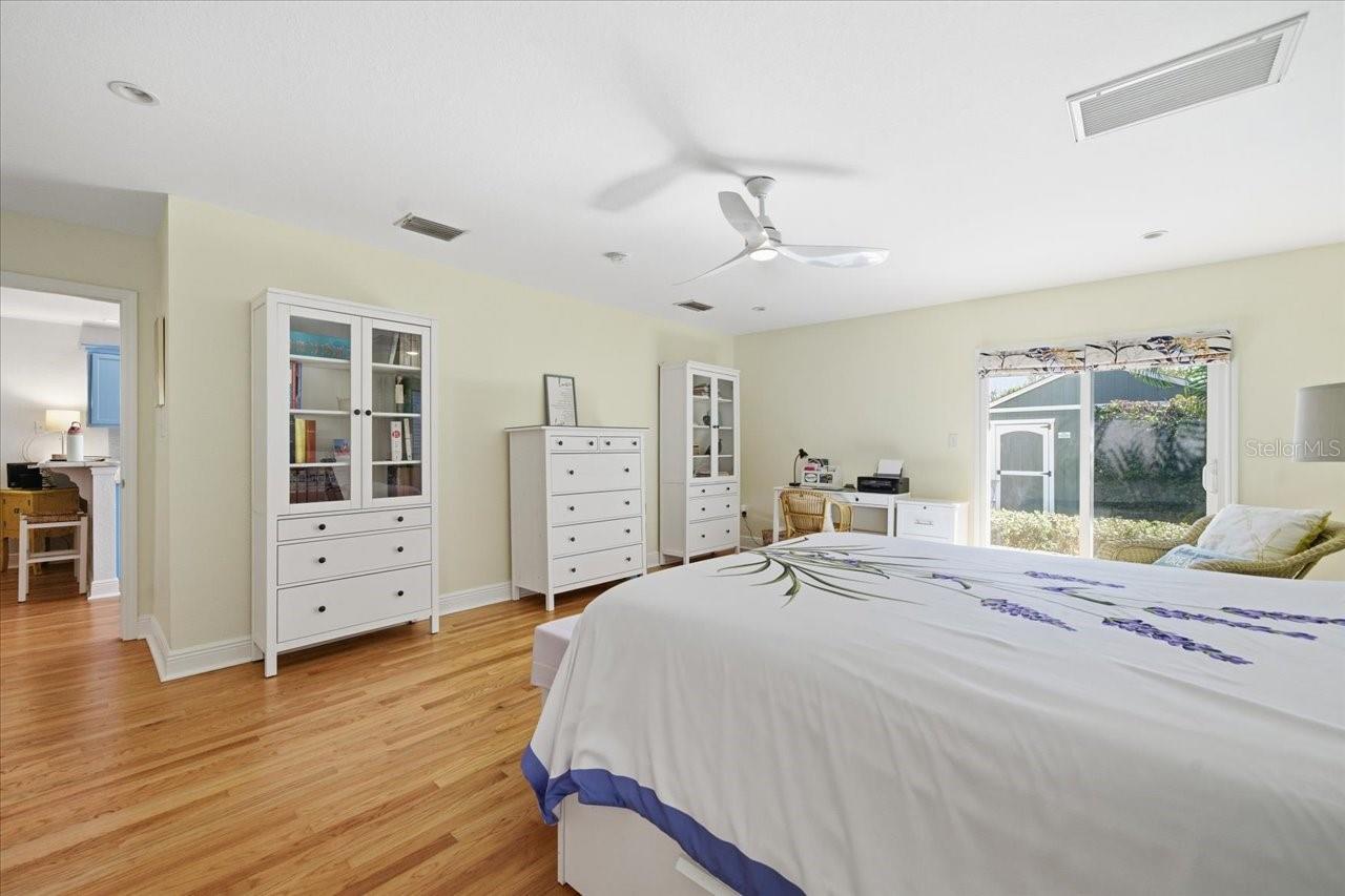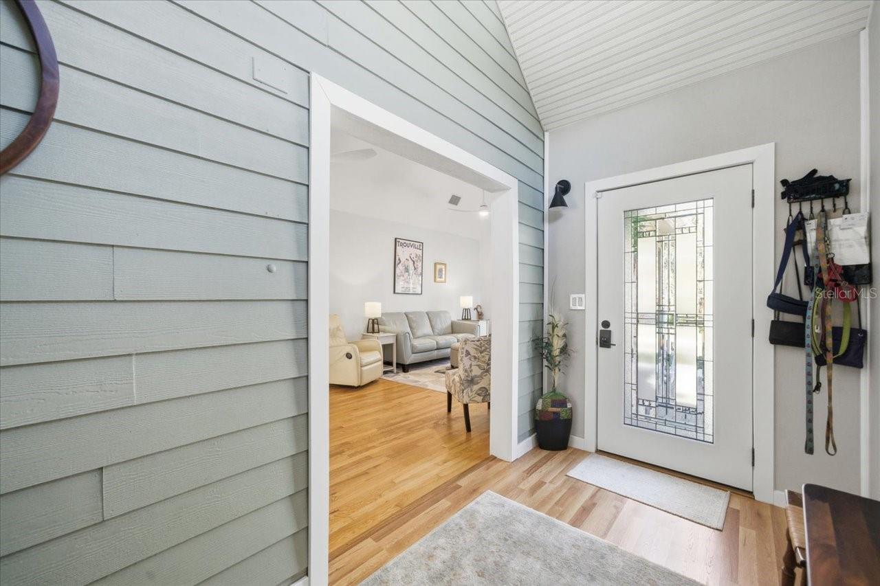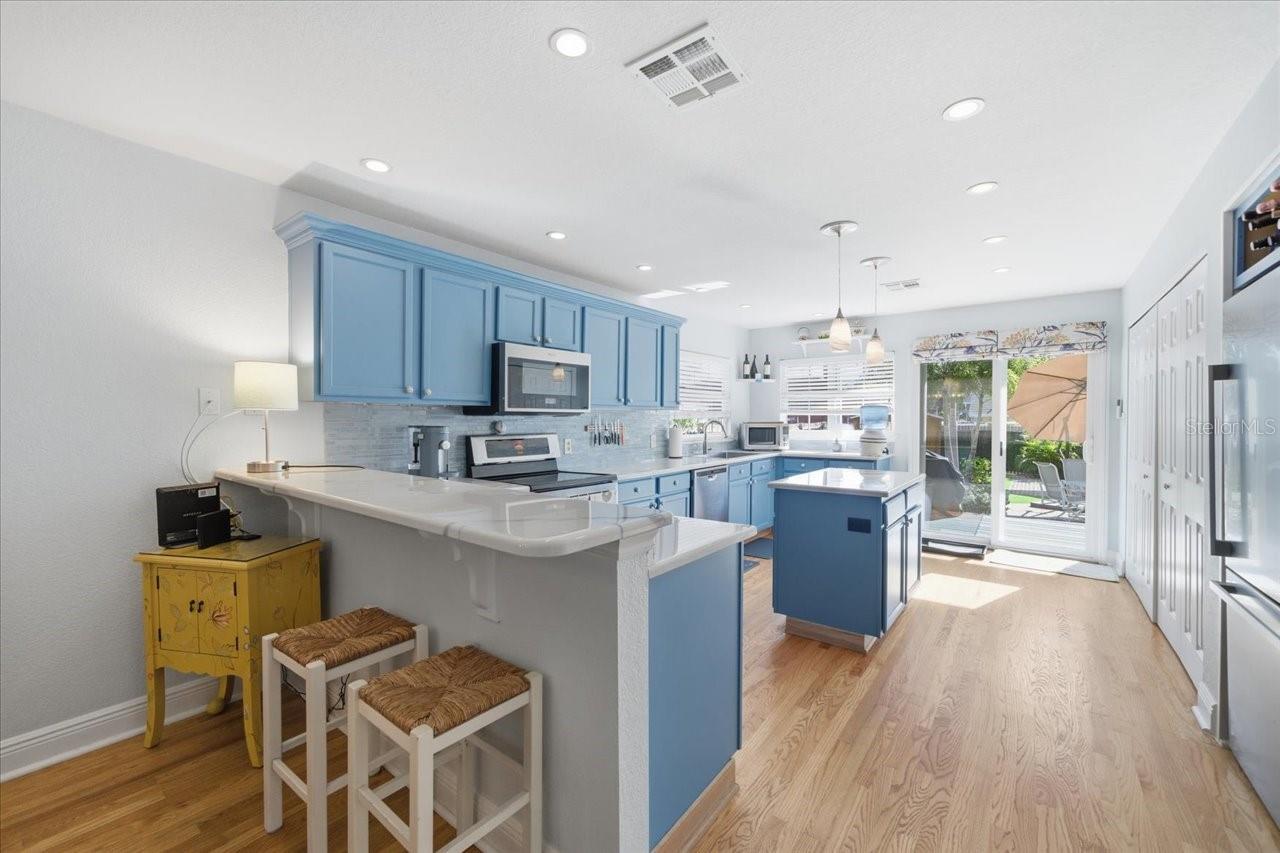 Welcome to a home where every detail has been thoughtfully reimagined. Your experience begins at the stylish new entry, featuring a hurricane-rated door (2024) and side-panel window. The original entryway has been cleverly transformed into a private screened-in patio, perfect for peaceful morning coffees. Step inside to find a light-filled living room boasting vaulted ceilings and the home's original wood-burning fireplace. To your left, the guest suite is a showstopper with its own vaulted ceilings and a massive bay window with a deep ledge--ideal for a reading nook or a plant lover's paradise. This room maximizes space with a built-in Murphy bed and an oversized walk-in closet. The heart of the home is the stunning kitchen, featuring farmhouse-style aesthetics and an island centerpiece. The granite countertops have been expertly finished with epoxy, providing a designer look that's easy to maintain. Nearby, the massive primary suite serves as a true retreat, featuring a spa-like bath with a jetted tub, walk-in shower, and dual sinks. Step through new sliding glass doors (2024), either from the kitchen or the primary bedroom, into your own private backyard oasis. Designed for low-maintenance luxury, the yard features turf, pavers all surrounded by live greenery kept lush by a Rain Bird micro-irrigation system. Relax on the deck under custom sun shades, soak in the working hot tub, or utilize the gorgeous hand-built Norwegian Spruce shed. Located in an ADU-friendly neighborhood with alley access, this property offers the rare potential to build an additional dwelling unit. With a 2021 garage with a workbench, and a reinforced turf-lock parking pad, this home is as smart as it is beautiful.